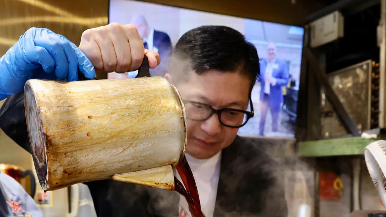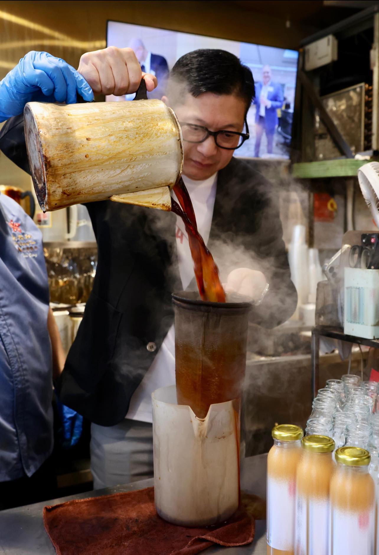 大公文匯全媒體報道,政府大力推動「無處不旅遊」,保安局局長鄧炳強今日(21日)在社交平台發文推薦「灣仔的美味」,更落力上手一展「拉茶真功夫」。