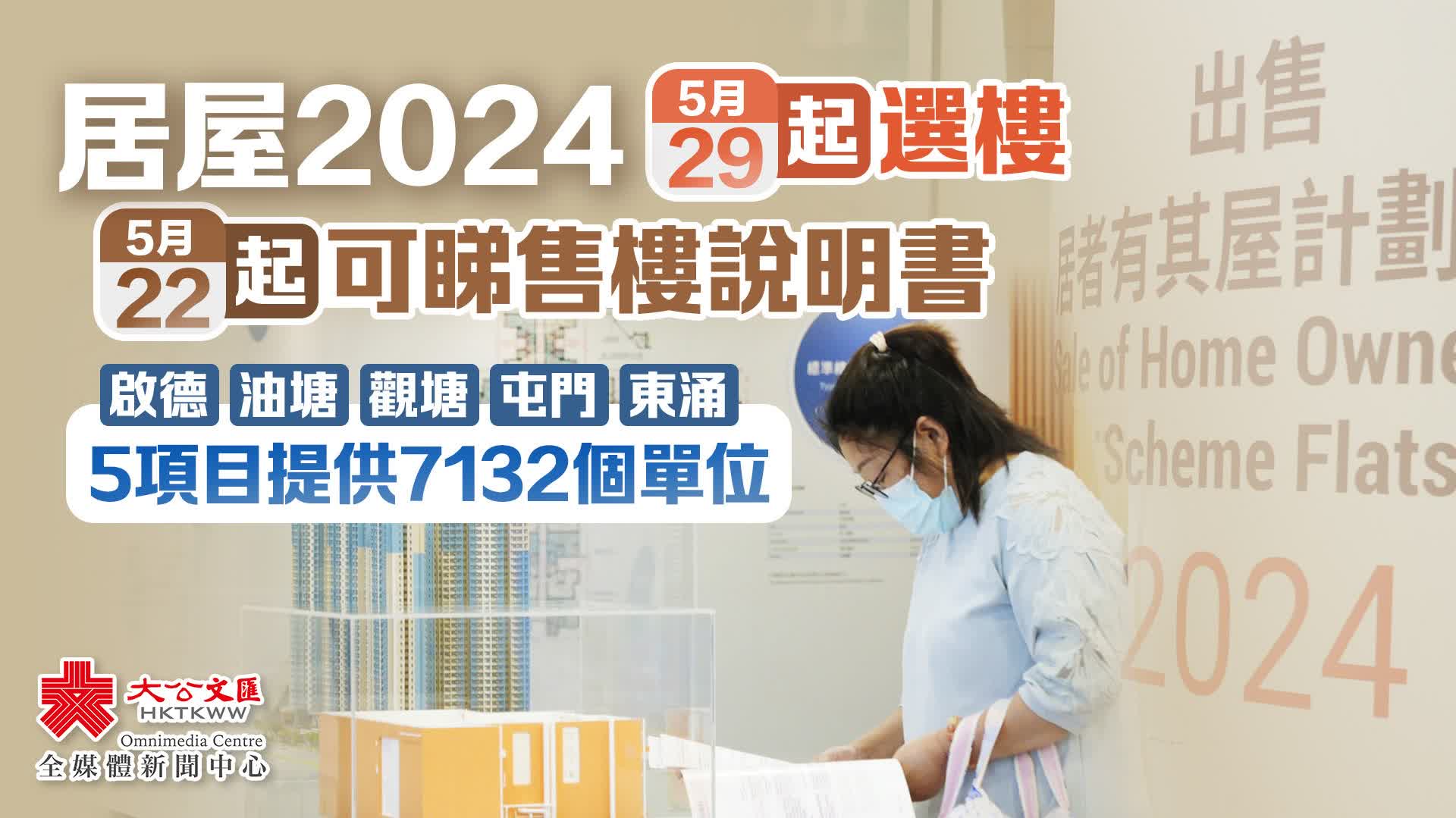大公文匯全媒體報道,香港房屋委員會「出售居者其屋計劃(居屋)單位2024」(「居屋2024」)將於5月29日開始選樓。房委會發言人表示,房委會會按申請類別的優先次序,分批發信或電郵邀請合資格申請者在指定時間前往樂富房委會客戶服務中心(客務中心)選購「居屋2024」推售的單位。在選樓期開始前7日起(即22日)直至選樓期結束期間,會提供售樓說明書(及為租置計劃回收單位提供售樓小冊子)和價單,於樂富客務中心供公眾索取,以及在房委會/房屋署的指定網站瀏覽。