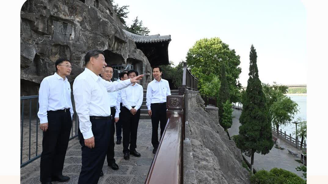 5月19日,正在河南考察的習近平總書記來到洛陽龍門石窟,察看石窟整體布局風貌和代表性窟龕、造像,同現場的文物保護工作者親切交流。總書記強調,要把這些中華文化瑰寶保護好、傳承好、傳播好。