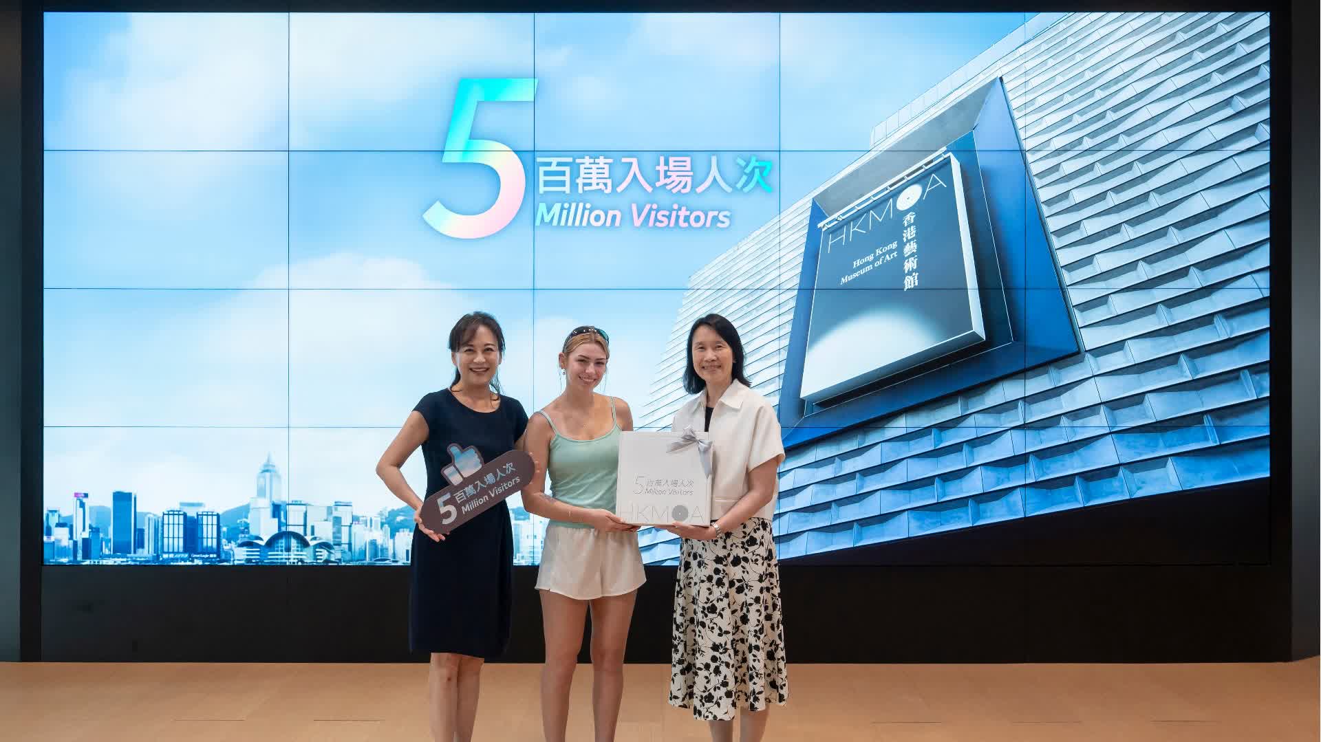 第500萬名訪客是來自加拿大的一名大學生,她和朋友是首次到訪香港藝術館,對傳統藝術感興趣,認為香港藝術館的展品豐富。為紀念這特別時刻,香港藝術館為她預備特別的紀念品,並由康樂及文化事務署署長陳詠雯送上以館藏設計的瓷碟,並由香港藝術館總館長莫家詠導賞,介紹展覽。
