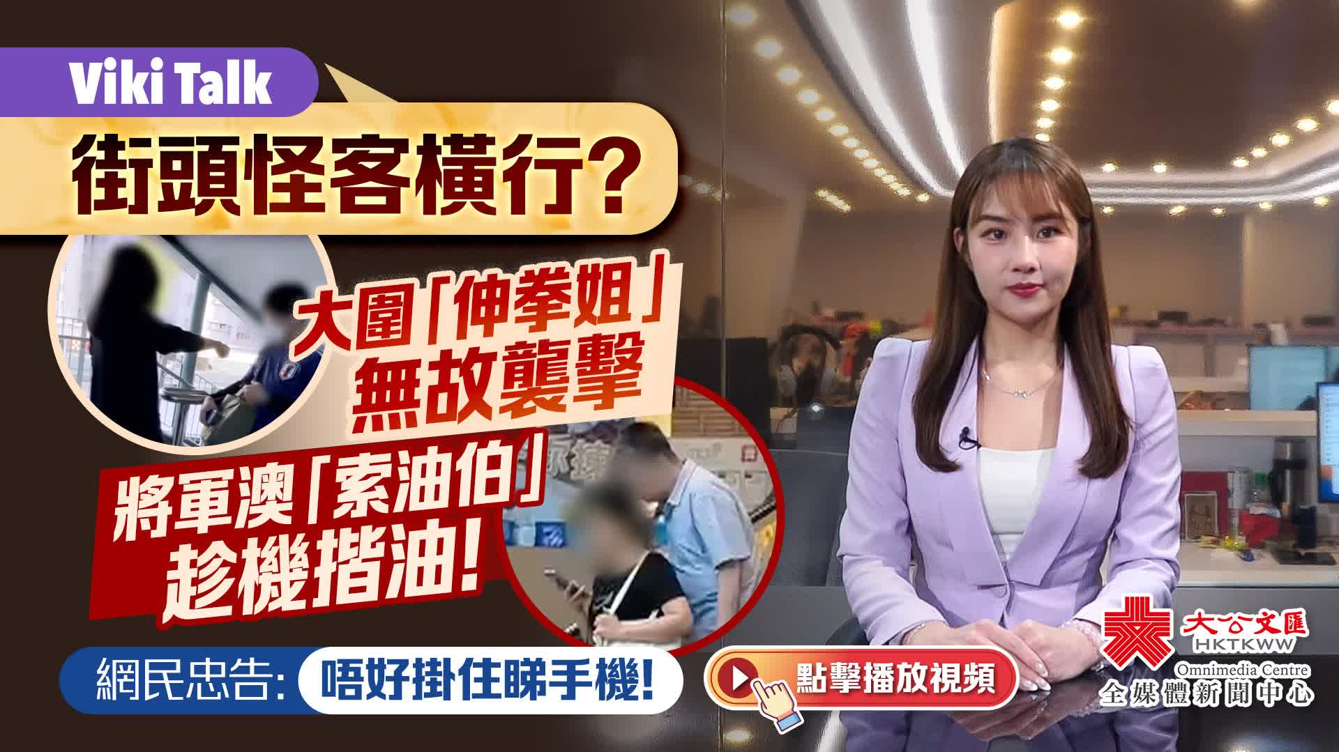 大公文匯全媒體報道,你有沒有試過走在路上,被陌生人突如其來的怪異行為嚇一嚇?近日TVB《東張西望》節目接連揭露兩宗街頭滋擾事件,一位是「見人就打」的「伸拳姐」,另一位則是專對長髮女性感興趣的「索油伯」,兩位都趁途人低頭看手機做怪異舉動,引發全城有關「街頭怪客」的大討論。