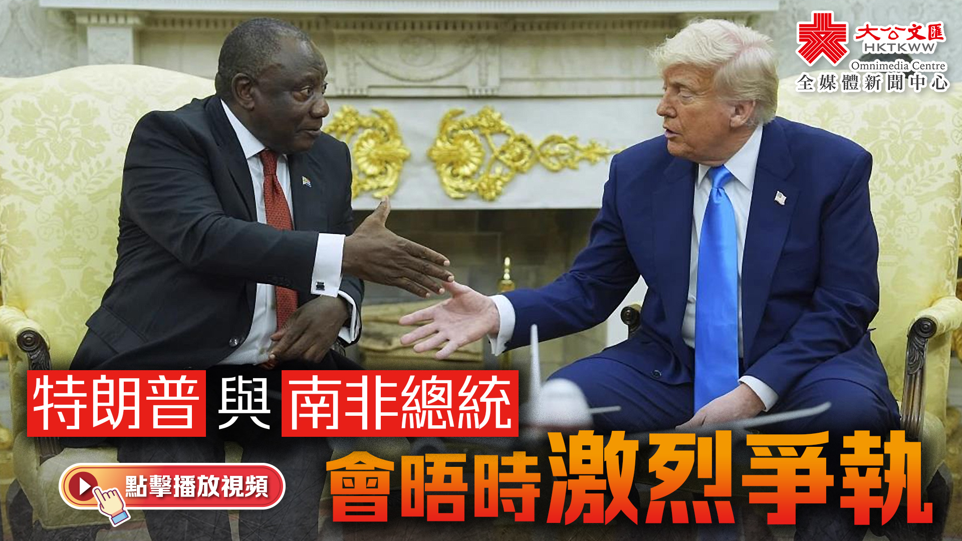 大公文匯全媒體綜合央視新聞報道,當地時間5月21日,美國總統特朗普在白宮會晤到訪的南非總統拉馬福薩時發生爭執,雙方就「南非是否正在發生白人種族滅絕」一事展開激烈辯論。