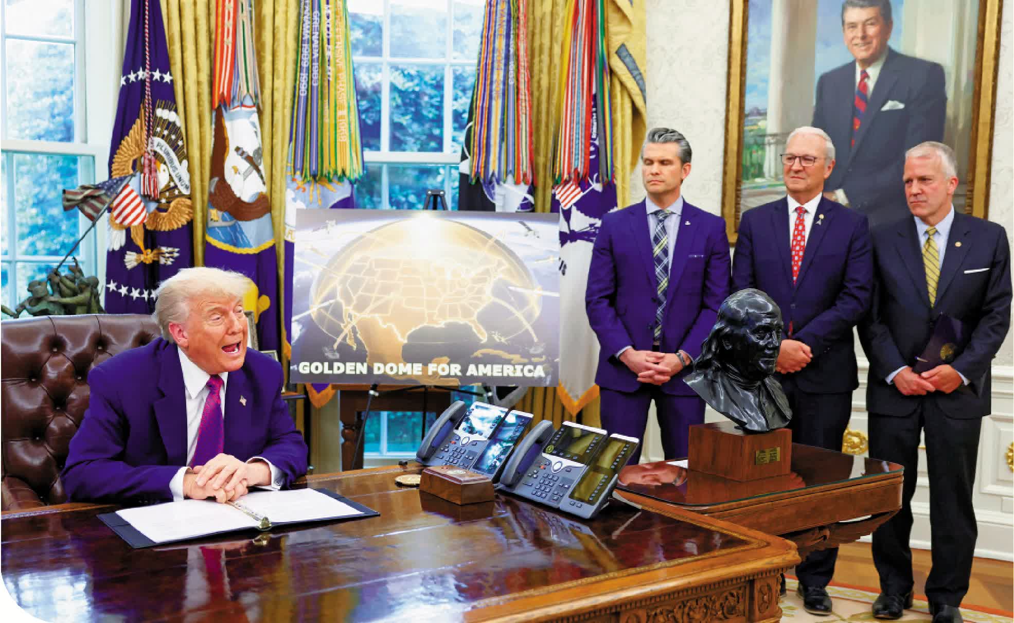 大公報獨家觀察。美國總統特朗普上任後,宣稱美國「黃金時代由此開始」。果不其然,他宣布了一個充滿「土豪」味的「金穹」計劃,投入最少1750億美元。特朗普在日前的記者會上自豪地稱,攔截率可達到100%。原本名為「鐵穹」的計劃改了一個名,似乎就能改變性質。但可惜的是,就如同特朗普「不靠譜」的性格一樣,這樣的導彈攔截系統不僅不可能實現,反而會成為拖垮美元的「金窮」計劃,重蹈40年前的「星球大戰」計劃的失敗覆轍。點此閱讀詳情