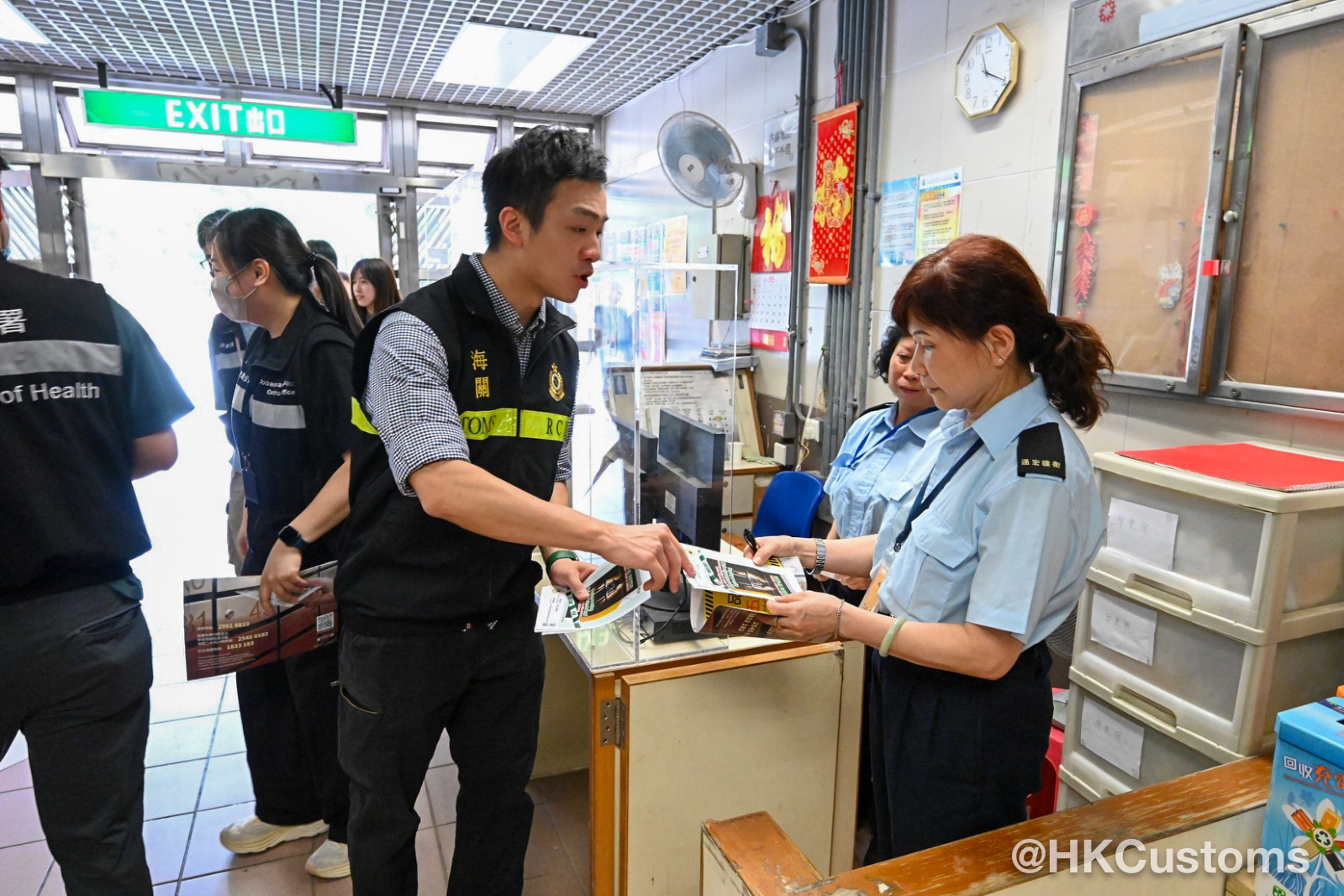 海關人員於屋邨範圍向居民、商戶及屋邨保安員講解反私煙信息,當中包括政府建議修訂現有法例以提高私煙相關罪行的罰則,並鼓勵他們向海關舉報懷疑買賣私煙活動。