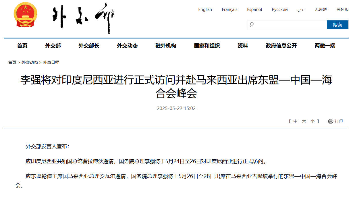 大公文匯網報道,外交部發言人宣布,應印度尼西亞共和國總統普拉博沃邀請,國務院總理李強將於5月24日至26日對印度尼西亞進行正式訪問。