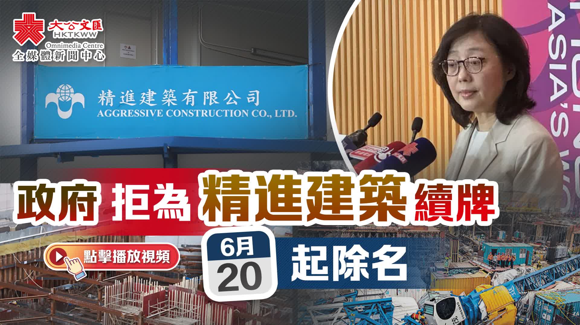 (大公文匯全媒體 記者 陳子萌)發展局局長甯漢豪今日(22日)宣布,根據《建築物條例》,拒絕精進建築有限公司(精進建築)作為一般建築承建商的註冊續期申請,並將於今年6月20日起將精進建築從一般建築承建商名冊中除名。自該日起,精進建築將不得進行《建築物條例》下的任何建築工程。精進建築今日起計,大約有一個月時間處理手上工程的善後工作。