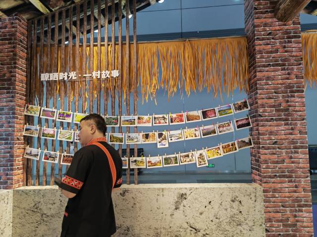 展廳正面入口左側的鑊耳牆,作為嶺南傳統建築的核心元素,其文化寓意吉祥,是雲浮鄉村建築古韻精華。鄉間認為鑊耳牆能保佑子孫「仕途順達、豐衣足食」,與右側的「五穀豐登」鄉村振興田園生活場景,以及「雲浮特色」系列非遺手工竹編、剪紙藝術畫相互映襯,相得益彰。