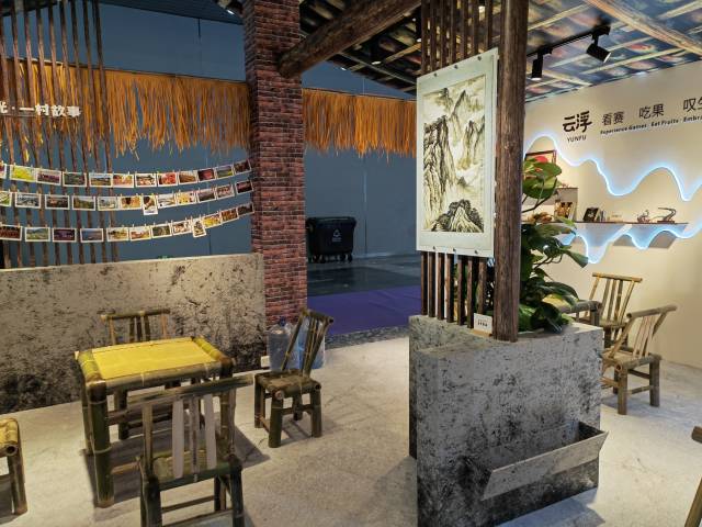 鑊耳牆、竹編畫、雲浮石藝、泗綸蒸籠編織技藝,還有年輕人返鄉創業打造的「豬圈咖啡屋」……第二十一屆文博會的現場,雲浮把「藍天白雲」下的一條村都「搬」到展廳現場。