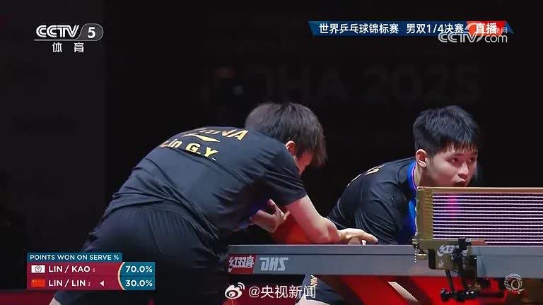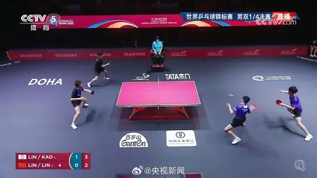 據央視新聞報道,2025多哈世乒賽男雙1/4決賽,林高遠/林詩棟不敵林昀儒/高承睿,無緣半決賽。5月21日,另一中國組合梁靖崑/黃友政惜敗,無緣8強。至此,中國隊在男雙賽場全軍覆沒。