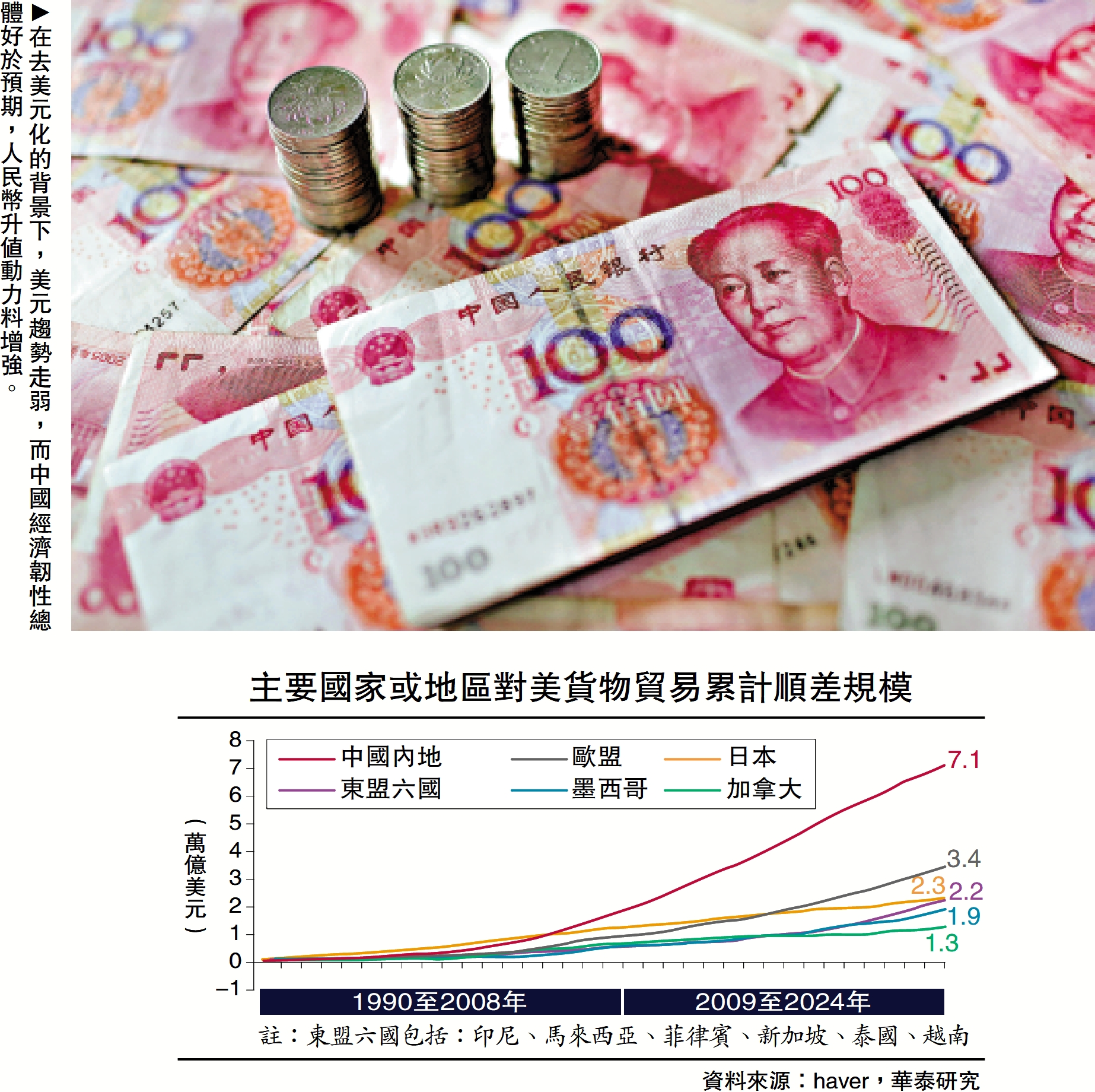 在去美元化的背景下,全球,尤其是亞洲資產大幅超配美元,低配本幣的「套利交易」,勢必經歷一輪結構性「再平衡」。在此過程中,人民幣貶值預期或將消弭,甚至出現強勁的升值動力。