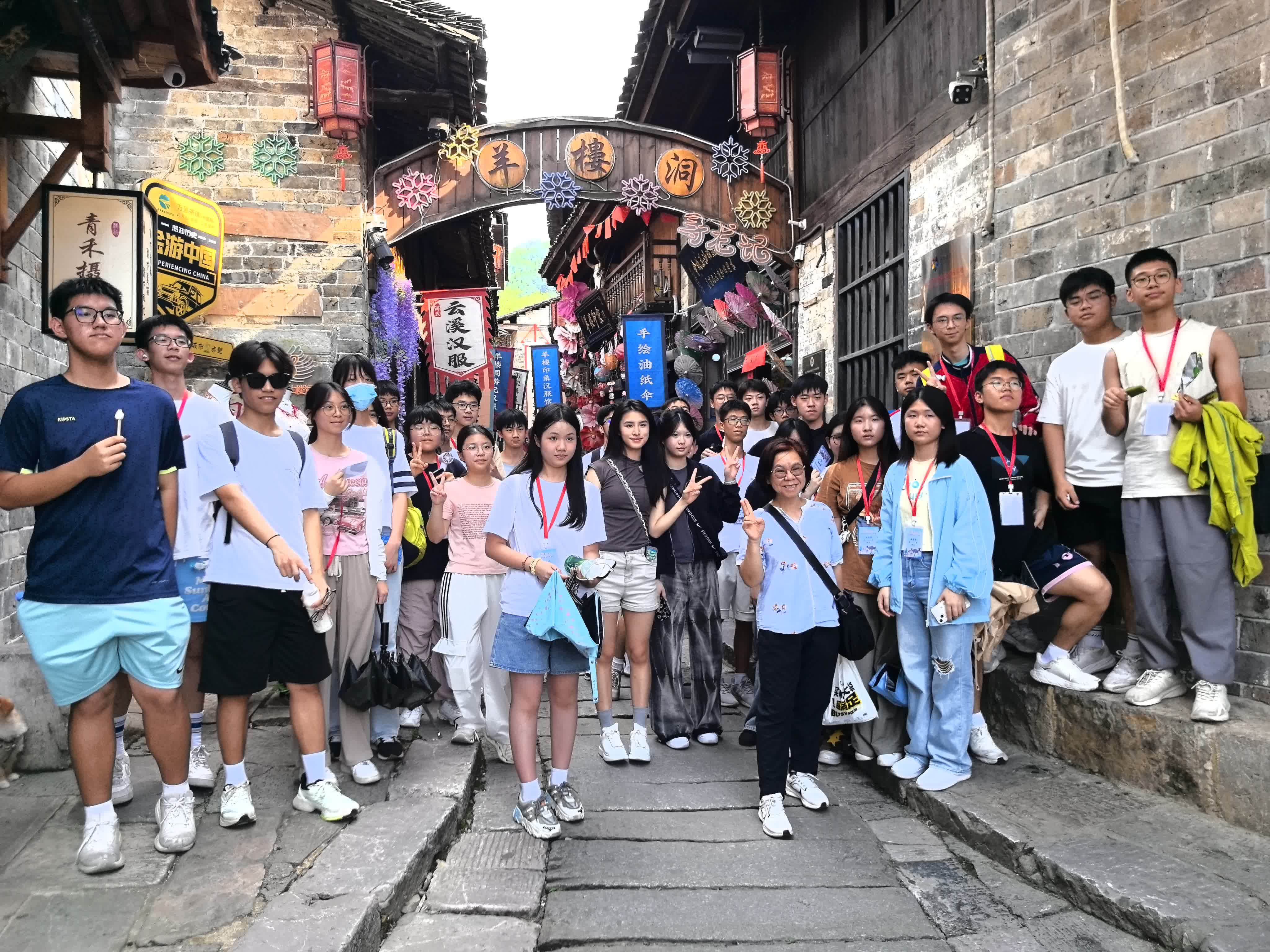 21日下午,研學團轉赴羊樓洞古鎮。青石板路蜿蜒如帶,斑駁古牆鐫刻歲月印記,同學們穿梭於明清古街,循著茶香探秘「萬里茶道」千年商脈,聆聽晉商駝隊跨越山河的傳奇故事。青磚灰瓦間,潺潺流水訴說著古鎮往昔繁華,別具韻味的鄂南風情令大家沉醉其中。