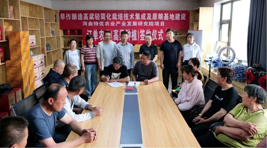 5月20日,河曲縣舉行旱作釀造高粱輕簡化栽培技術集成及原糧基地建設、河曲特優農業產業發展研究院項目、訂單農業(高粱種植)簽約儀式。山西農業大學高粱專家技術團隊、特優農業產業發展研究院,山西貴汾普隩酒業有限公司及種植大戶共同參與,河曲縣農業農村局負責人見證簽約。