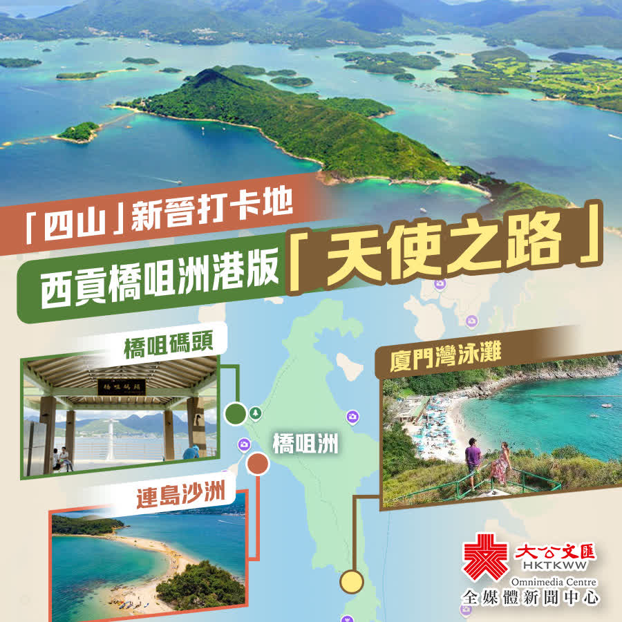 (大公文匯全媒體 實習記者 許竣皓)特區政府日前舉行記者會,正式推出以「咫尺山海·行嶺風光」為主題的「四山」旅遊項目,涵蓋太平山、鳳凰山、西貢海和大帽山四大景區。西貢海擁有眾多特色島嶼和曲折的海岸線,蘊藏着無數人間仙境,橋咀洲就是其中之一。