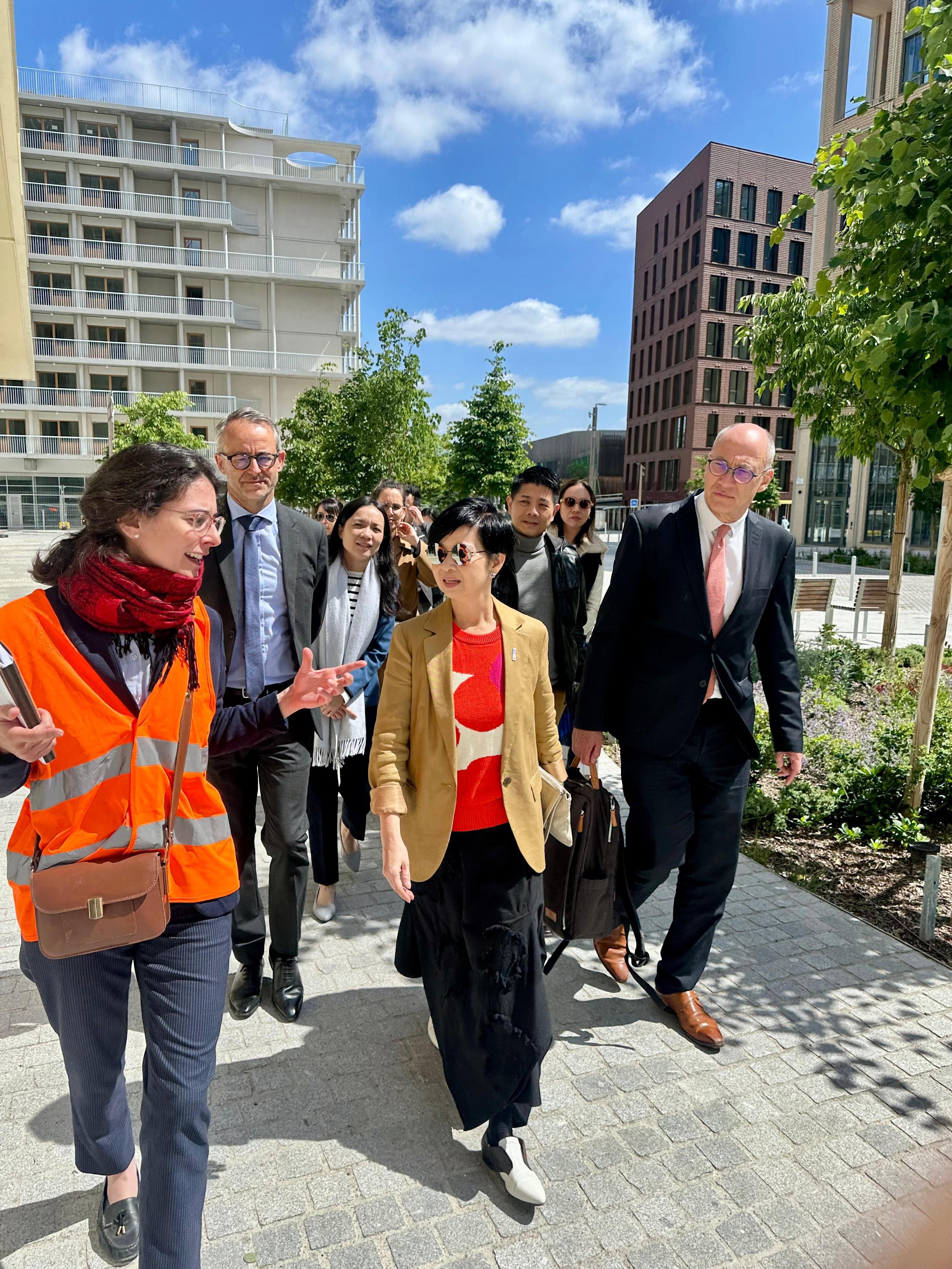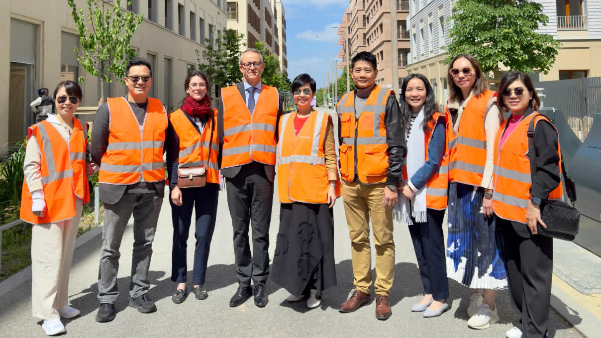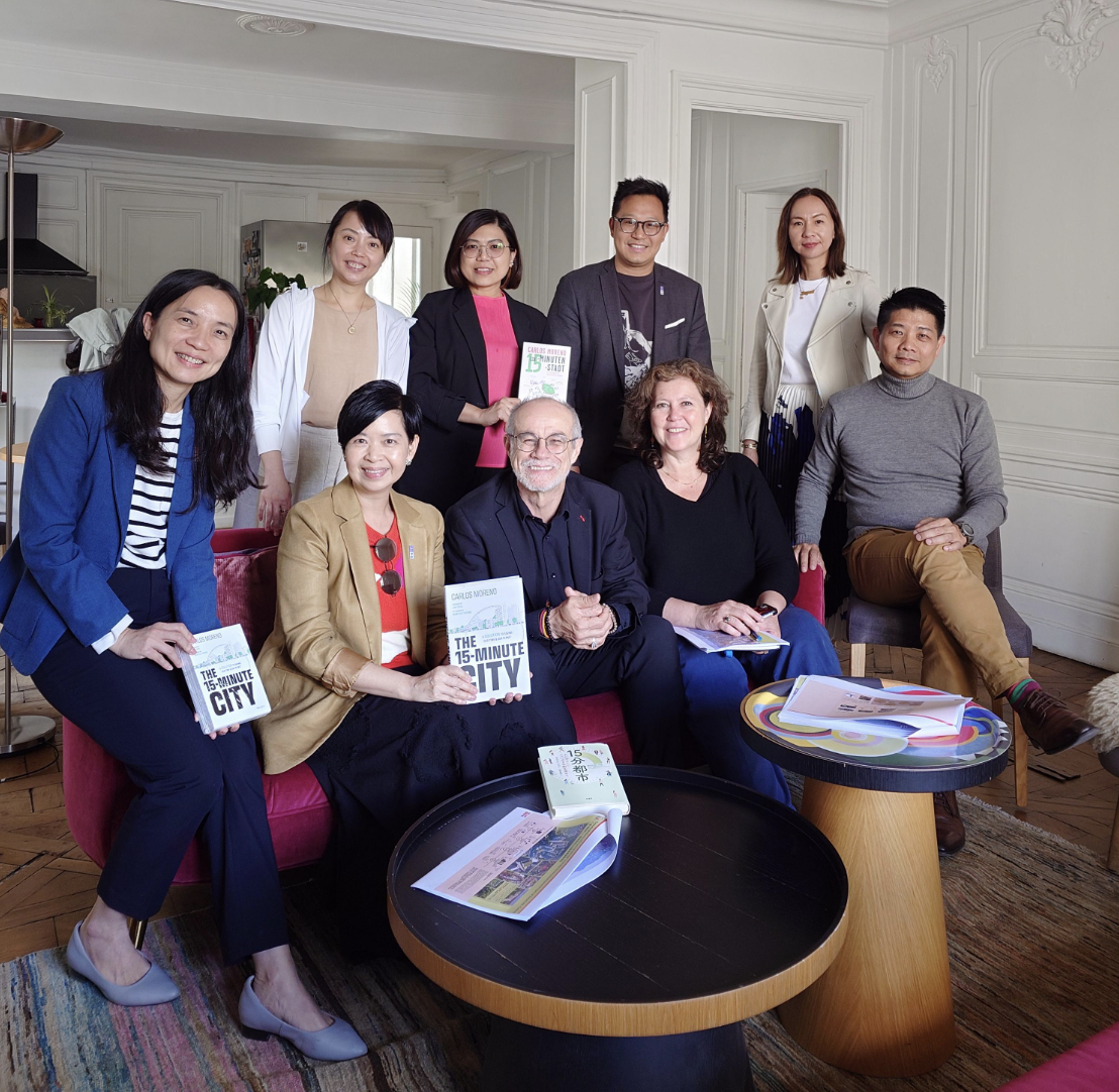 何永賢隨後參觀由奧運選手村改造而成、包含社會房屋的商住綜合社區,了解可持續的城市化發展。此外,何永賢亦與著名城市規劃師IAE Paris Sorbonne Business School副教授Carlos Moreno進行交流,分享可持續城市規劃與設計的理念和看法。Carlos Moreno教授提出「15分鐘城市」的都市規劃概念,目標讓社區內的居民可以在15分鐘的步行或腳踏車路程可及的範圍內,滿足食衣住行等日常生活所需,提升環境可持續性。何永賢指出,這正正與香港房屋委員會新公共屋邨的規劃理念不謀而合,並以皇后山邨為例,講解房委會規劃時以居民為本,打造自給自足的社區,當中更蘊含文化遺產,以及與大自然共融,打造可持續社區。Carlos Moreno教授對香港的公共房屋規劃模式表現得十分有興趣,並表示希望日後有機會到香港參觀。