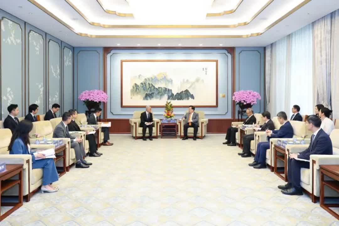 據國務院港澳事務辦公室消息,5月23日下午,中央港澳工作辦公室主任、國務院港澳事務辦公室主任夏寶龍在北京會見澳門特區政府經濟財政司司長戴建業一行。
