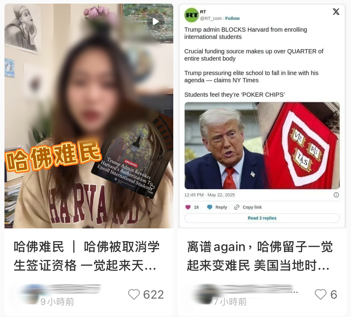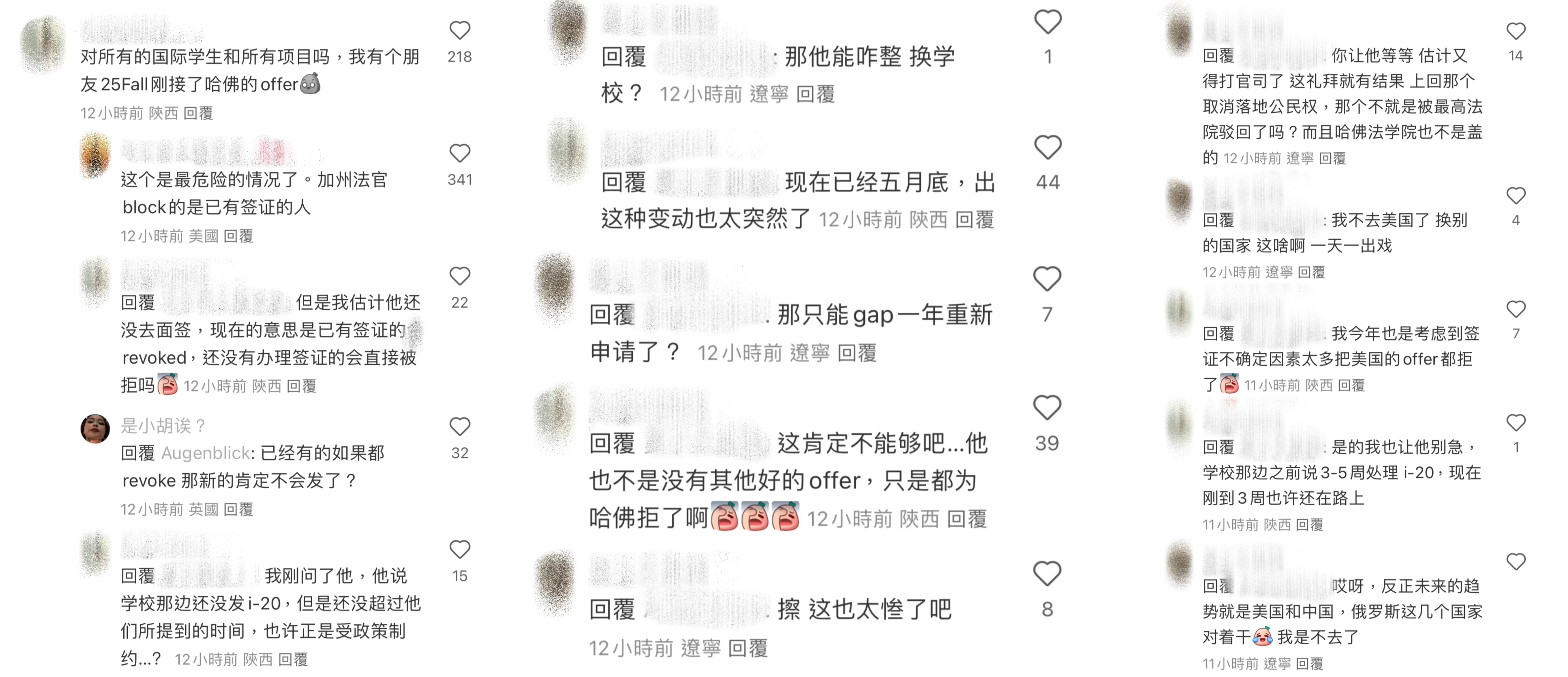 記者留意到,社交平台上有內地網友表示,自己的朋友剛被哈佛錄取,今年秋季即將入學,此前為了哈佛已經拒絕了許多其他大學的offer,而現在或因美國政府的新政策導致學生簽證尚未辦理成功,目前哈佛校方也還未有進一步通知。網友本人則指出,自己此前也因考慮到簽證的不確定因素太多,把美國的offer都拒了。