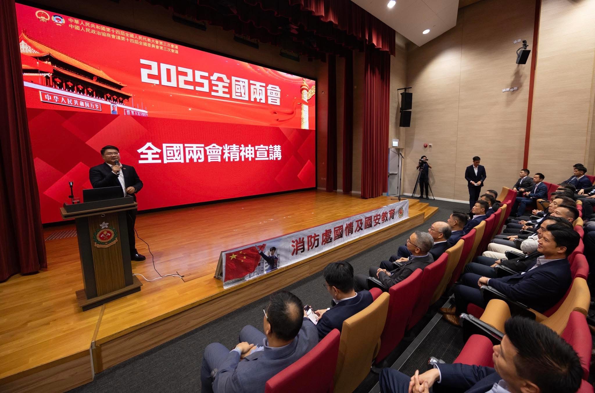 消防處「國情及國安教育督導委員會」將持續培養屬員深化了解全國兩會精神,並配合特區政府推動香港融入國家發展大局的方針。