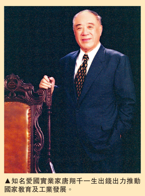 「愛國重教」一直是唐氏家族的優良傳統,數十年來,唐翔千實實在在支持教育、培訓人才,除多次捐款予本地及內地教育機構外,亦透過成立「唐君遠教育基金會」等,積極作育英才。