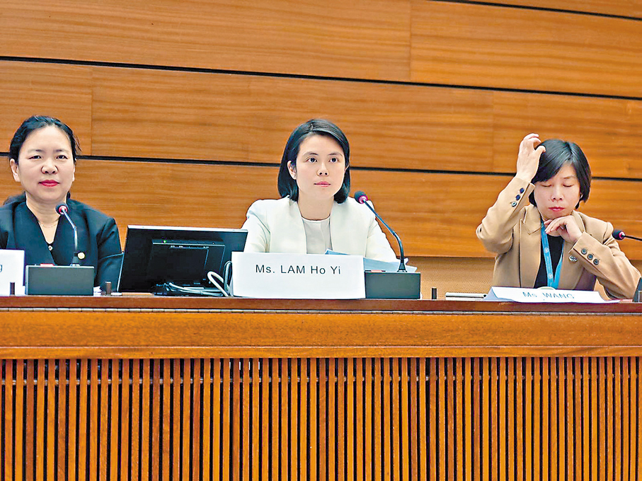林顥伊自己也在國際上發聲,向世界講述中國故事、香港故事。今年3月,她以香港青年聯會主席身份再度於聯合國人權理事會發言,透過實證與數據,闡明香港在「一國兩制」及國安法保障下持續繁榮穩定的事實,有力駁斥部分國家對香港人權狀況的誤解與偏見,「這份底氣,來自我對國家制度的信心,來自作為中國人的自信,也來自社會各界對青年的信任與支持。」