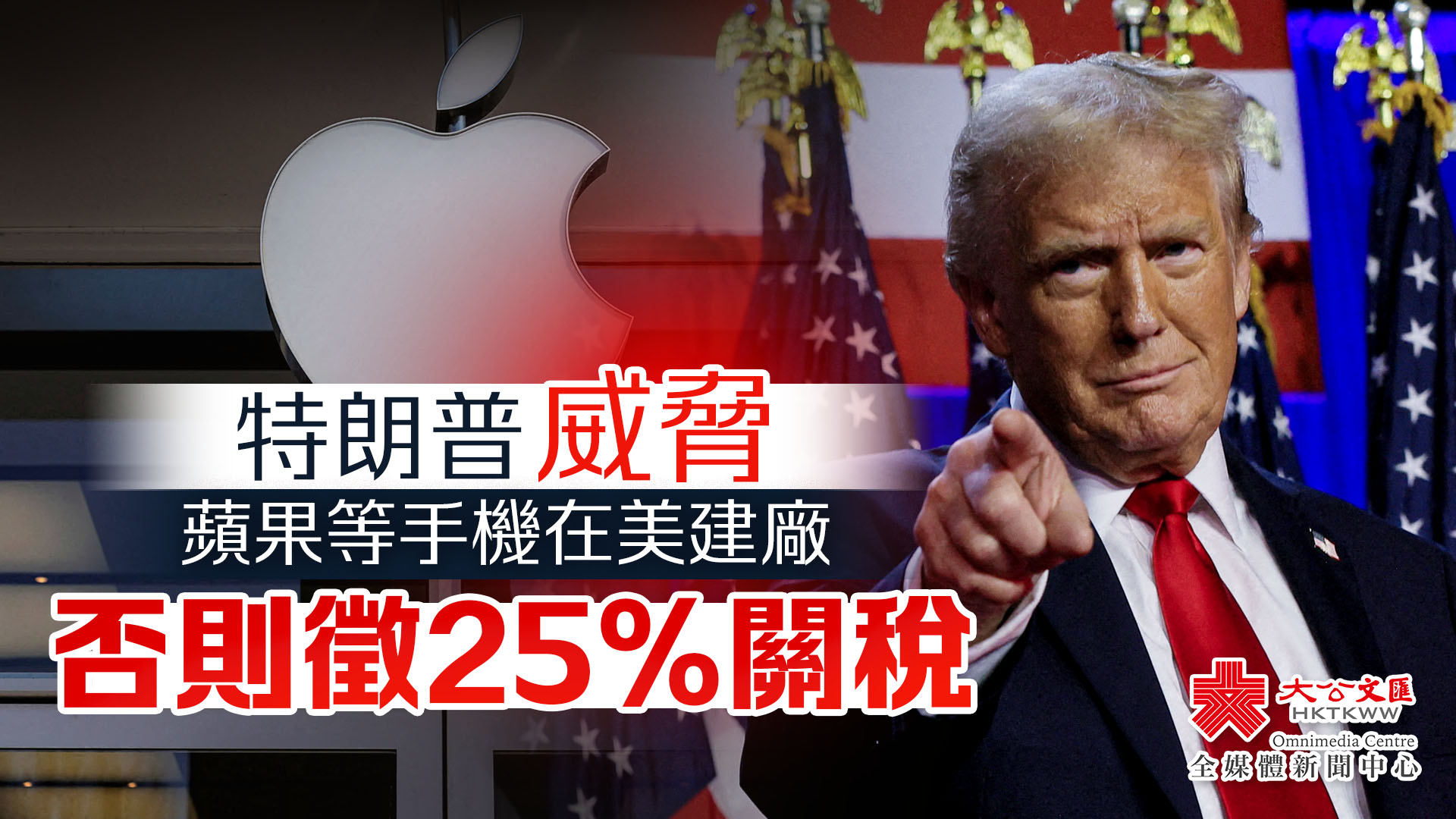 同一天,特朗普還表示,對不在美國生產的手機製造商徵收25%的關稅。