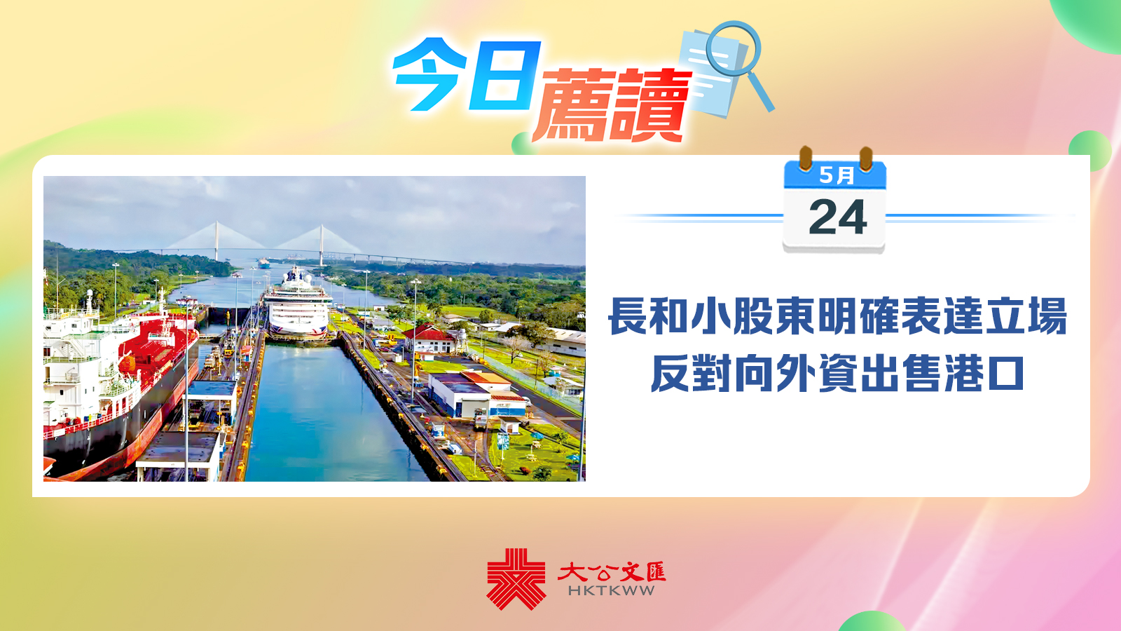大公報獨家報道。長和集團近月擬出售包括巴拿馬運河兩端重要港口在內的資產,引發社會各界的持續關注與猛烈批評。「商之大者,為國為民」,事件涉及國家安全和香港企業的大義大節,不少長和小股東明確表達反對與外資達成港口交易的立場,這一聲音正是大多數香港市民的心聲。點擊閱讀更多>>>