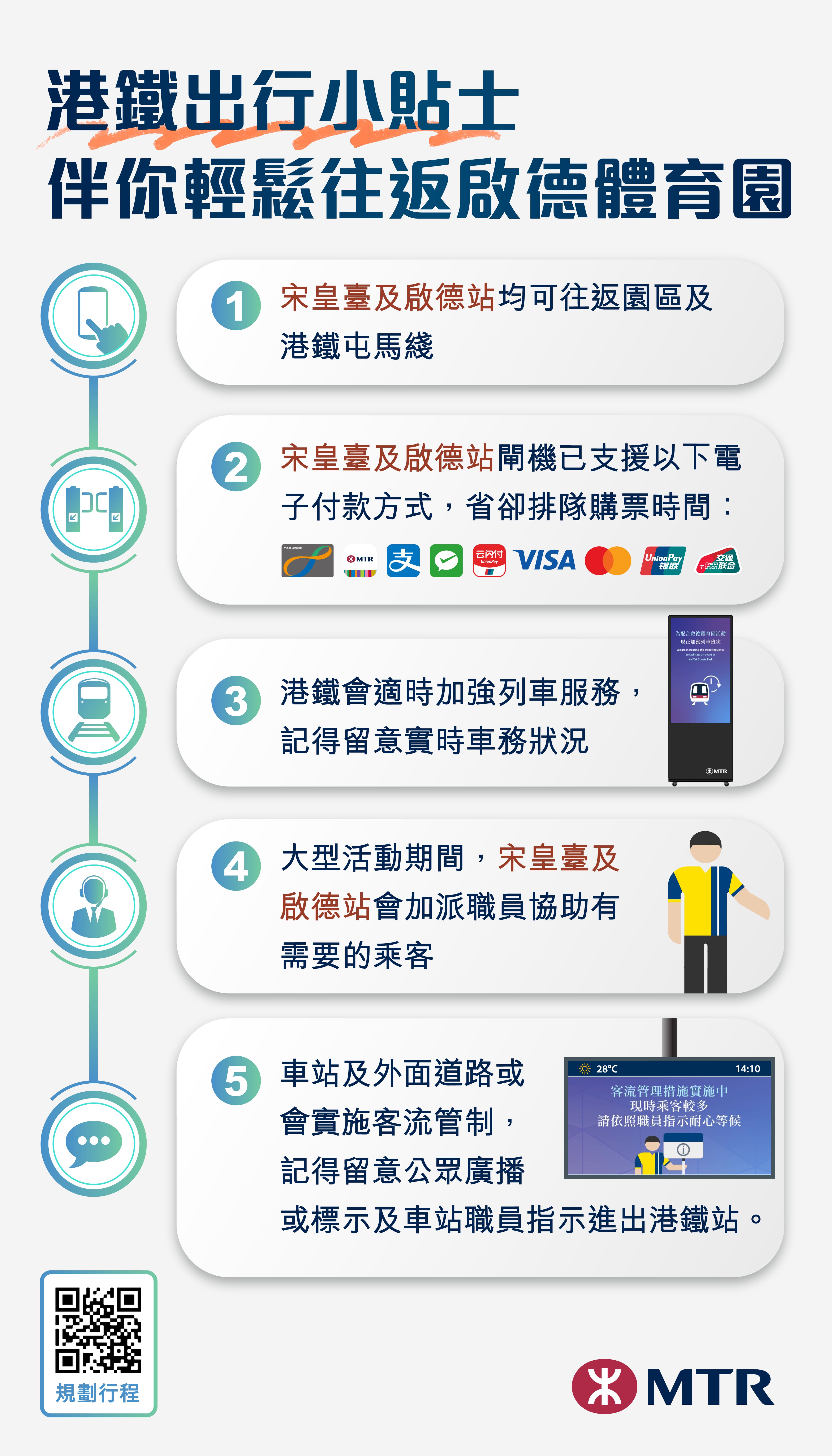 運輸署將實施特別交通及運輸安排,便利觀眾往返,同時呼籲過境旅客預早計劃行程,使用過境巴士的旅客應及早購票。前往演出現場的觀眾可留意場地廣播和「離場易」平台提供的實時資訊,即時獲取交通消息。