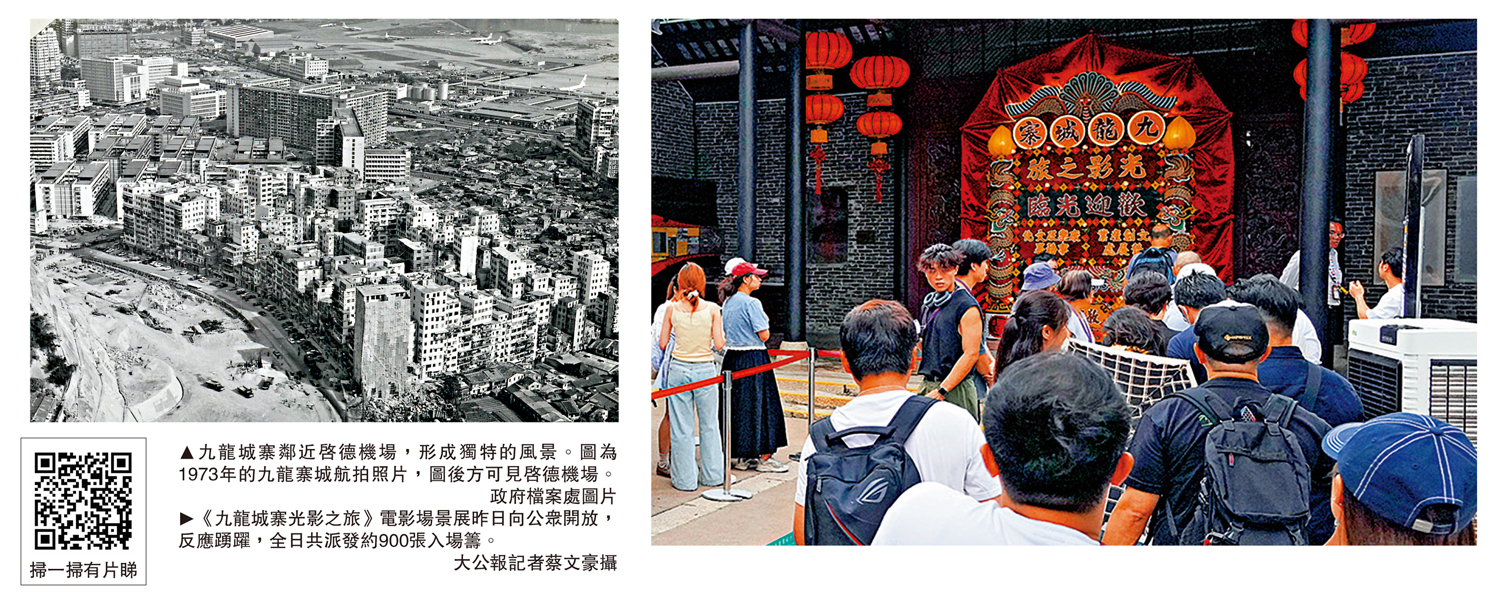 (大公報記者 劉碩源、蔡文豪)特區政府新推出的旅遊熱點項目「香港龍城深度遊」,其中的《九龍城寨光影之旅》電影場景展昨日向公眾開放,反應踴躍,全日共派發約900張入場籌,早上開門前已有數十人到場排隊等候。
