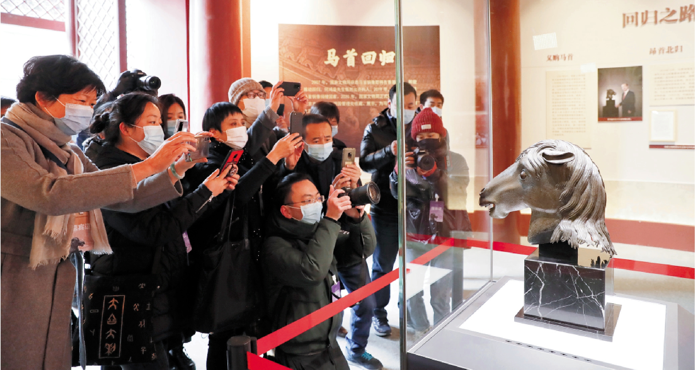 2020年末,一場關於圓明園馬首銅像的劃撥入藏儀式引起了廣泛關注,標誌着這一重要文物百餘年的回家之路畫上圓滿句號。馬首銅像亦成為第一件回歸圓明園的流失海外重要文物。國家文物局相關負責人表示,馬首回歸之路,匯聚黨和政府、港澳同胞磅礴力量,符合人民群眾殷切期待,詮釋着「民族弱則文物失,國運強則文化興」的深刻道理,同時也樹立了新時代流失文物回歸原屬地的成功範例。