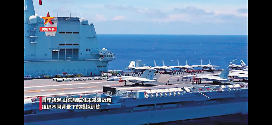 自年初起,山東艦組織不同背景下的模擬訓練,與海空兵力進行艦機協同、區域制空等課目演練,重點檢驗多兵種聯合作戰能力,積極打造航母戰鬥力新的增長極。