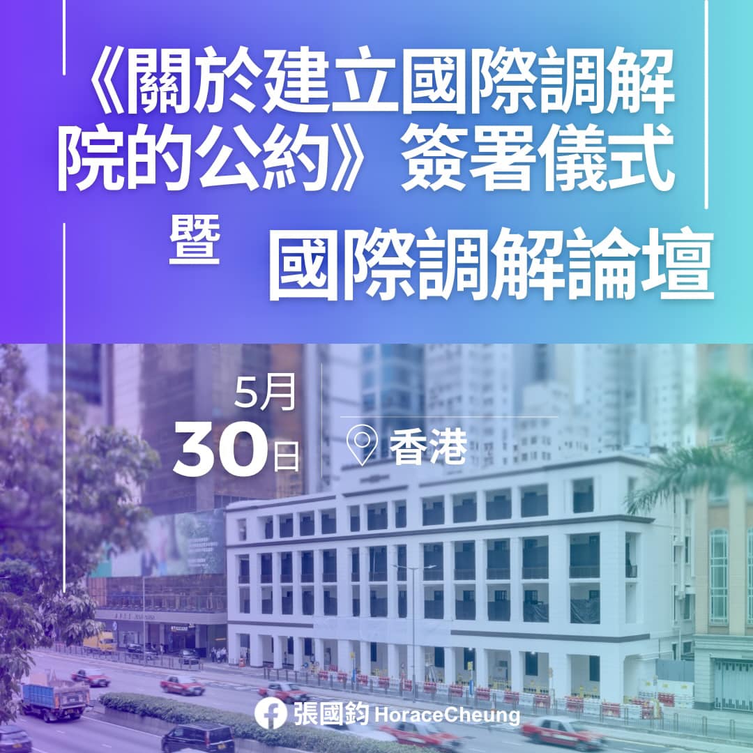 大公文匯全媒體報道,外交部日前宣布,中共中央政治局委員、外交部長王毅將於5月30日出席於本港舉行的《關於建立國際調解院的公約》簽署儀式。當日,近60個國家和聯合國等約20個國際組織的高級別代表將出席簽署儀式,下午將舉辦國際調解論壇,圍繞「國家間爭端調解」和「國際投資商事爭端調解」等重要議題展開深入探討。律政司副司長張國鈞今日(25日)在社交專頁發文指,特區政府早已成立跨部門小組,務求做好簽署儀式當日的相關安排。