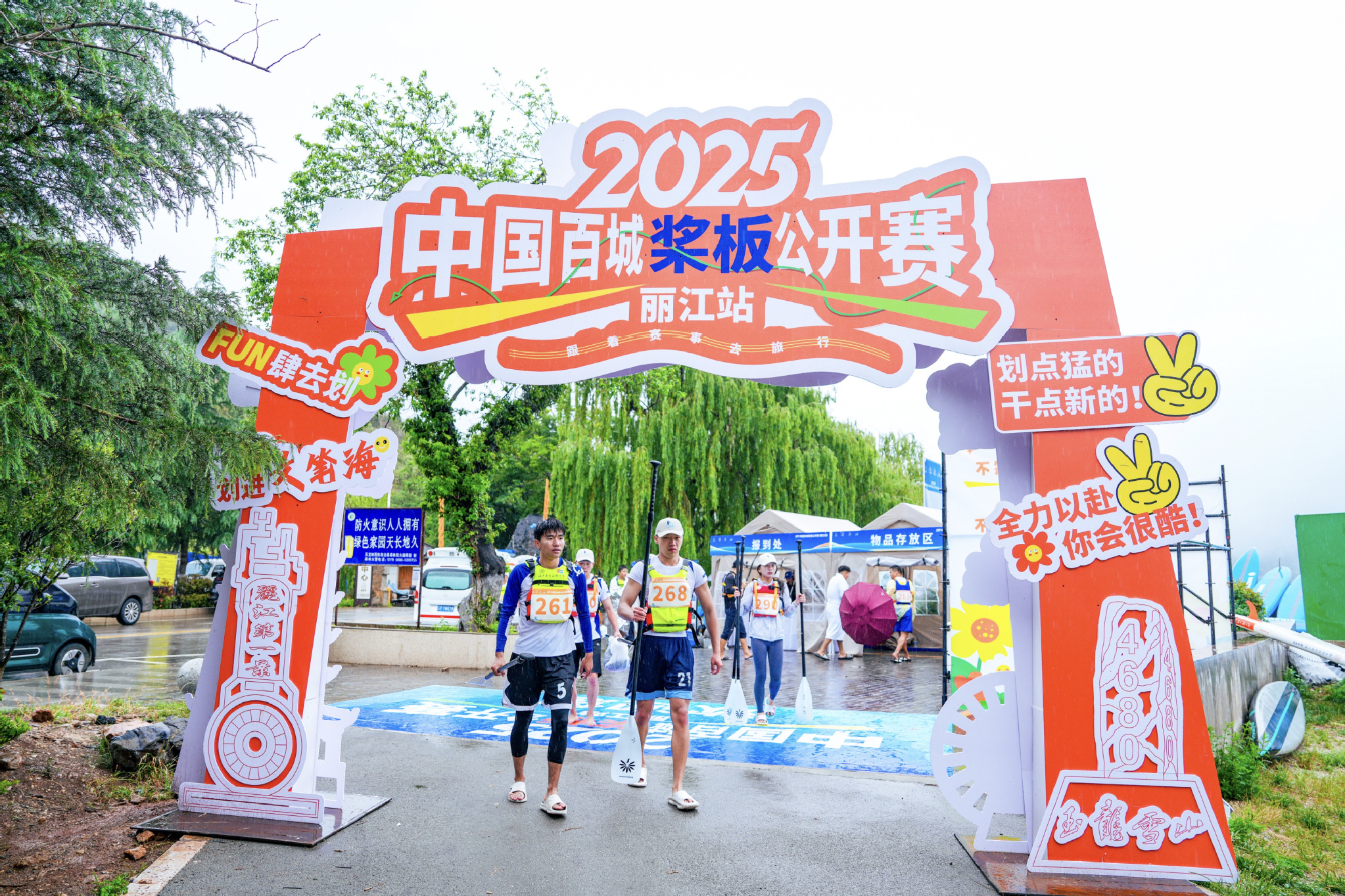 5月24日,濛濛細雨中,2025中國百城槳板公開賽(麗江站)在雲南麗江市玉龍縣文筆公園水域開賽。在當天上午結束的青少年1500米長距離賽中,伏羲浩宇、伏羲浩玥兄妹分別斬獲u12男子組、女子組冠軍。