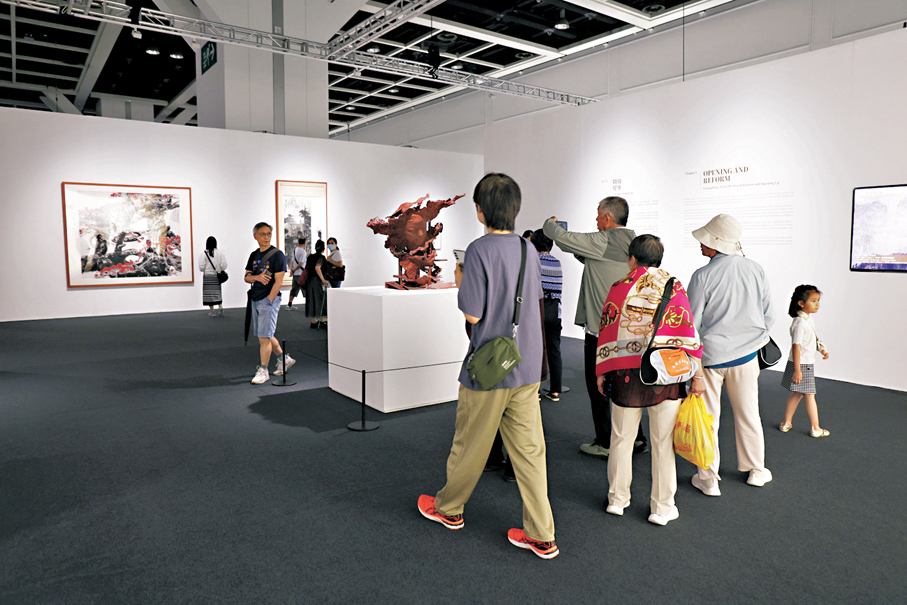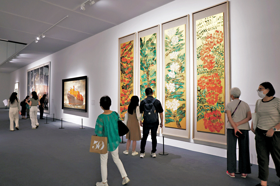 (香港文匯報記者 胡恬恬)正於灣仔會展中心展出的「其命惟新——廣東美術百年大展」昨日迎來首個周末,吸引不少本地市民和遊客到場觀展。香港文匯報記者在現場所見,展覽場內人流不斷,參觀者都很認真地細看展覽內容。有大學生在觀展後表示,今次展出的藝術家作品令人耳目一新,令她感受到守正創新的民族精神,也為她的畢業設計提供了靈感。有國際遊客稱讚展覽令人印象深刻,從中了解到更多中國歷史,會向朋友推介香港。有香港文化界人士也專程來觀展,認為此次展覽難得之處在於系統梳理了廣東百年藝術脈絡。