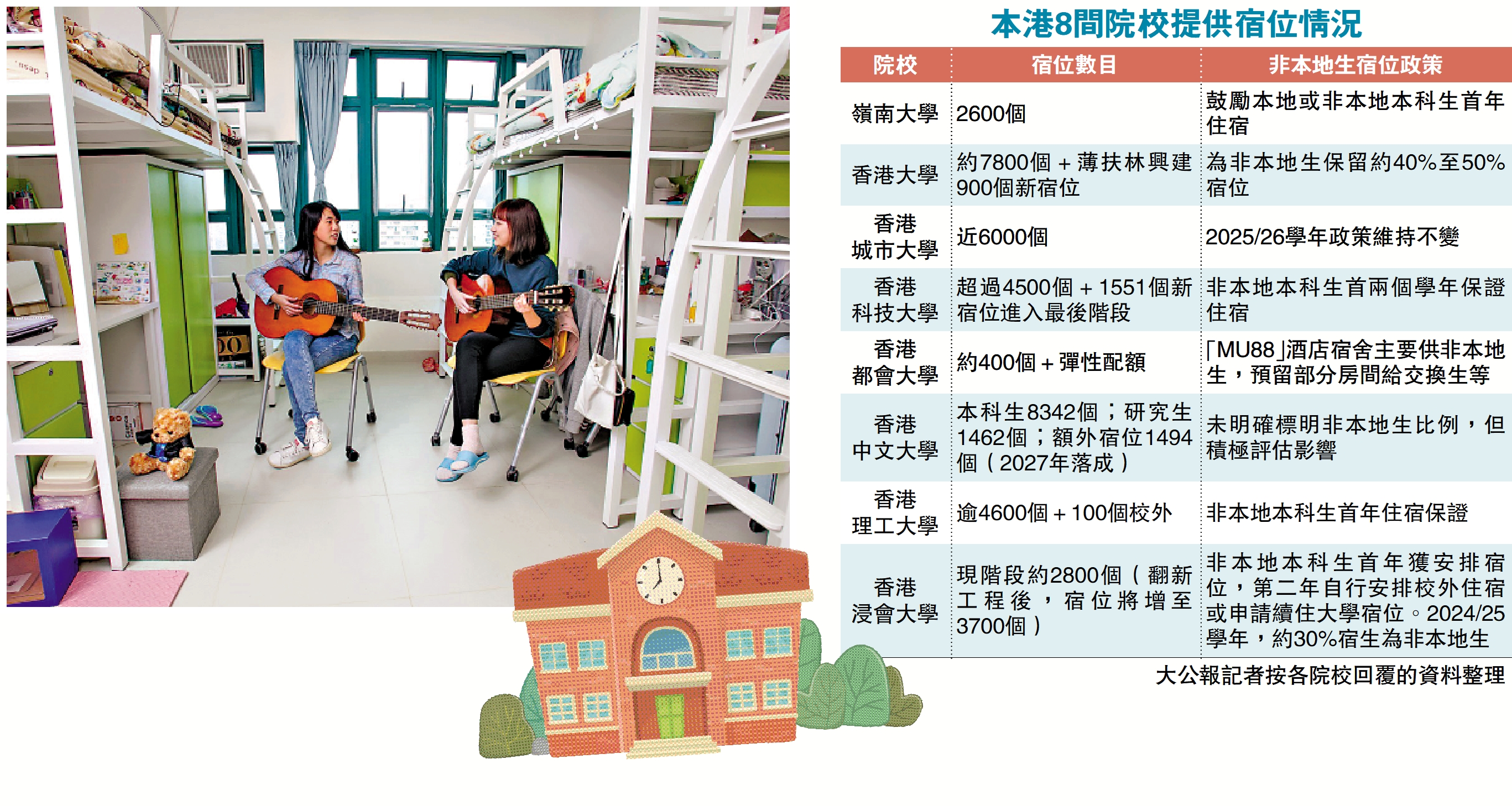 (大公報記者 余風)隨着特區政府積極推廣「留學香港」品牌,致力打造國際教育樞紐,加上美國近日發生哈佛大學被禁收國際學生事件,相信來港求學的人數會不斷攀升。然而,對於初來甫到、對香港環境尚不熟悉的外地學生而言,住宿成為一大難題。戴德梁行早前估算本港大學宿位短缺達5.5萬個,意味每三個學生要爭一個宿位。