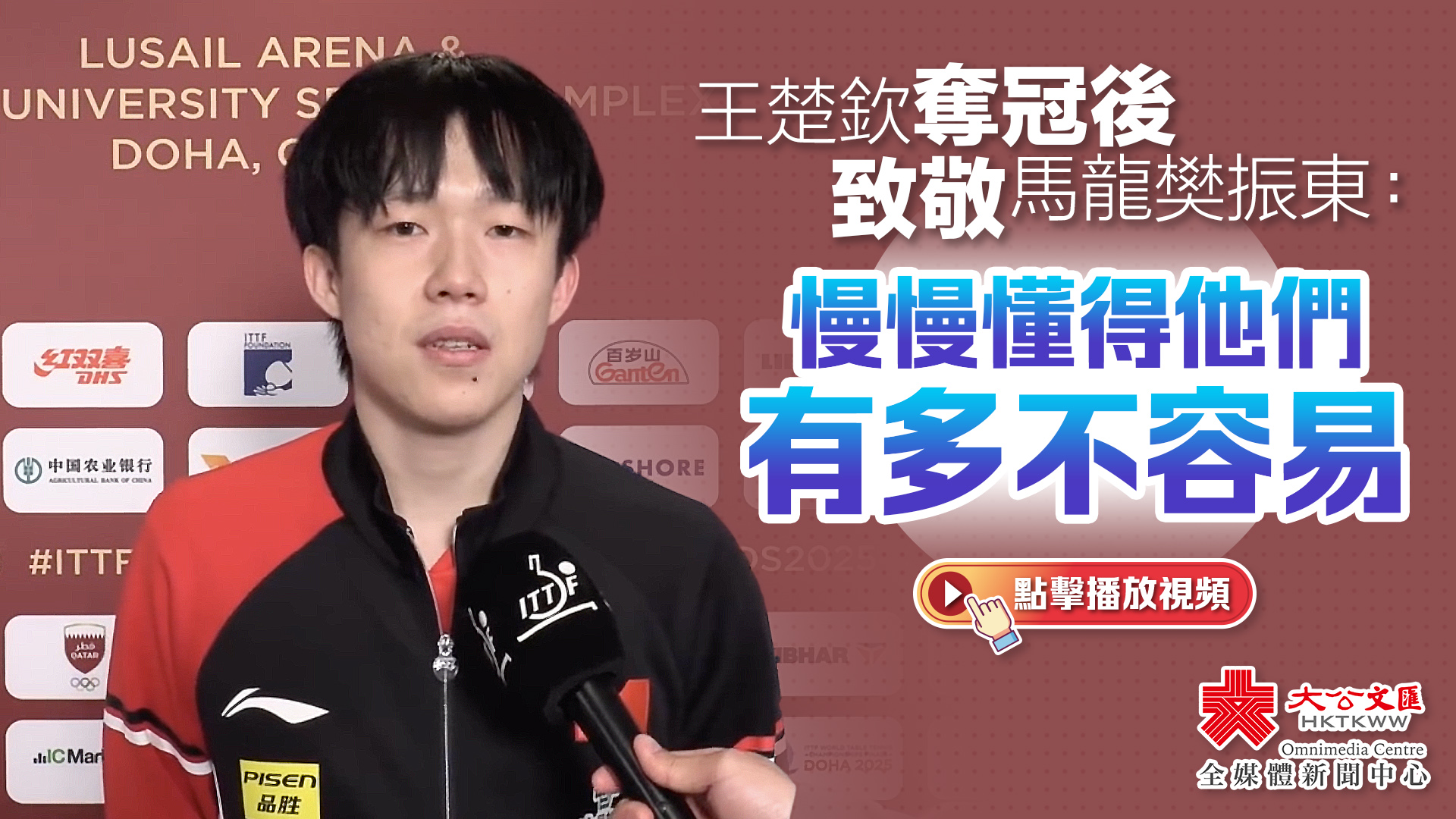關鍵詞:多哈王楚欽男單馬龍樊振東