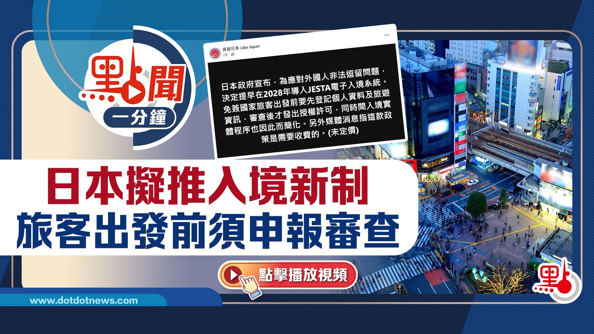 大公文匯全媒體報道,日本出入國在留管理廳在早前(5月23日)宣布,2028財年起將實施名為JESTA的線上入境事前審查制度,旅客出發前要先申報資料並交由日本當局審查,而新制度亦將對赴日本的遊客收取費用。