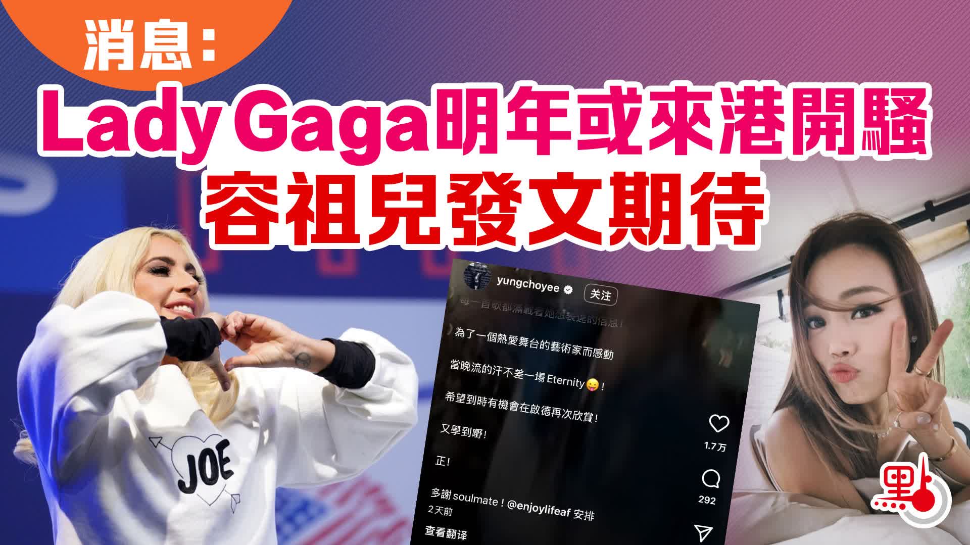 值得留意的是,香港天后容祖兒日前在Instagram發文,表示自己觀看了Lady Gaga的新加坡演唱會尾場,並寫道「希望到時有機會在啟德再次欣賞」,疑似暗示Gaga可能來港開唱。