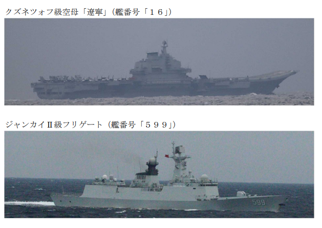 日本防衛省統合幕僚監部稱,防衛省與自衛隊出動海上自衛隊第六護衛隊所屬「高波」號護衛艦,以及第五航空群所屬的P-3C巡邏機,實施所謂的警戒監視與情報搜集任務;針對遼寧艦艦載機起降,航空自衛隊戰機也緊急升空因應。