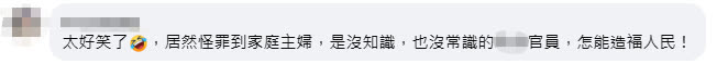 對此,有島內網友表示:「太好笑了,居然怪罪到家庭主婦,沒知識也沒常識的官員,怎能造福人民」「是有多看不起台灣人的智商?」