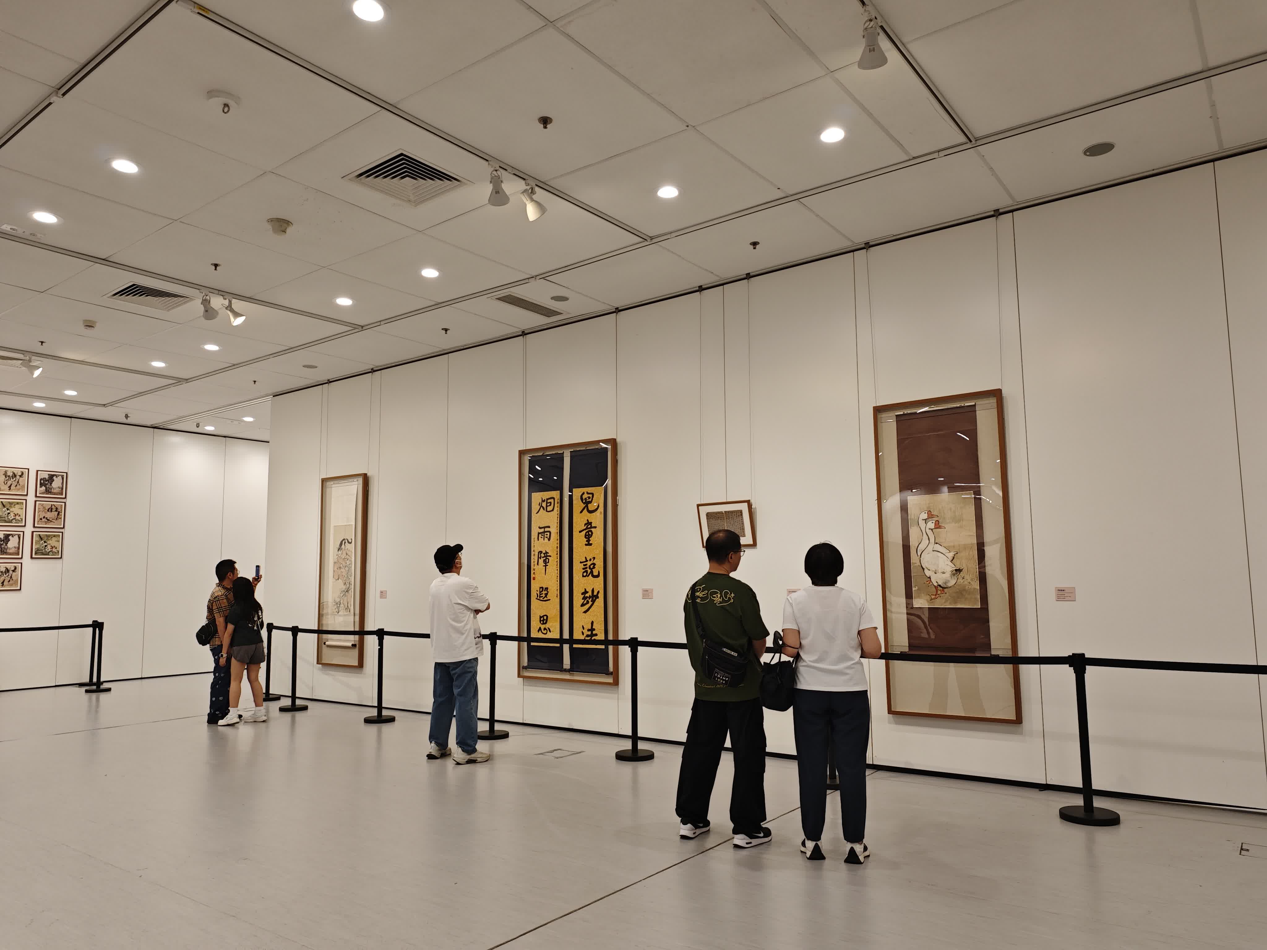 步入展廳,徐悲鴻筆下的駿馬、雄獅、人物肖像與山水畫作次第展開,輔以李濟深、老舍等師友作品,構成了一幅跨越時空的藝術對話圖景。市民們或駐足凝視,或低聲討論,展廳內瀰漫着濃厚的藝術氛圍。