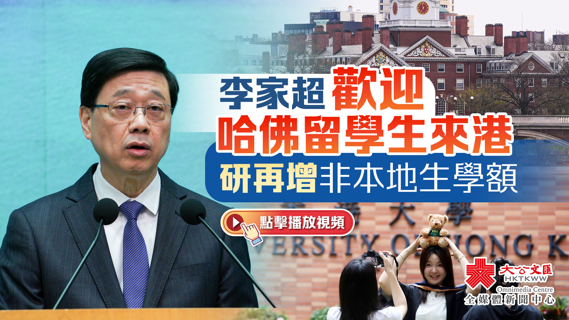 李家超歡迎哈佛留學生來香港繼續學業,特區政府與8間資助大學會盡全力幫助這些受到歧視及不公平對待的留學生來港,當局亦會接觸哈佛大學校友會提供協助。