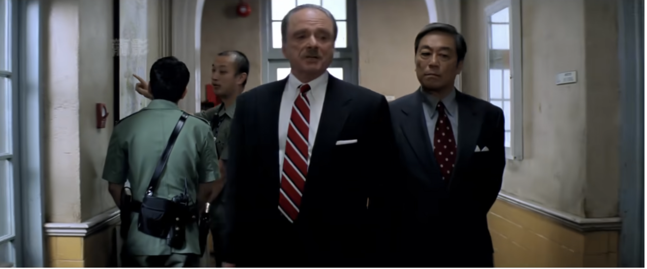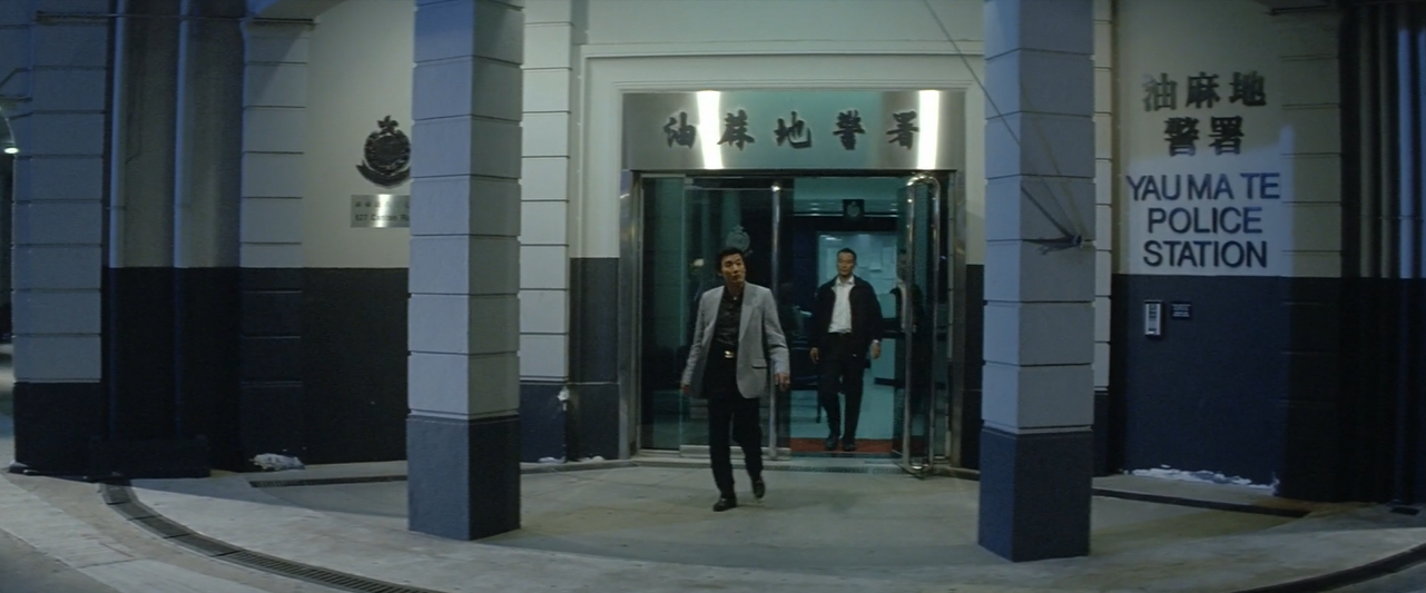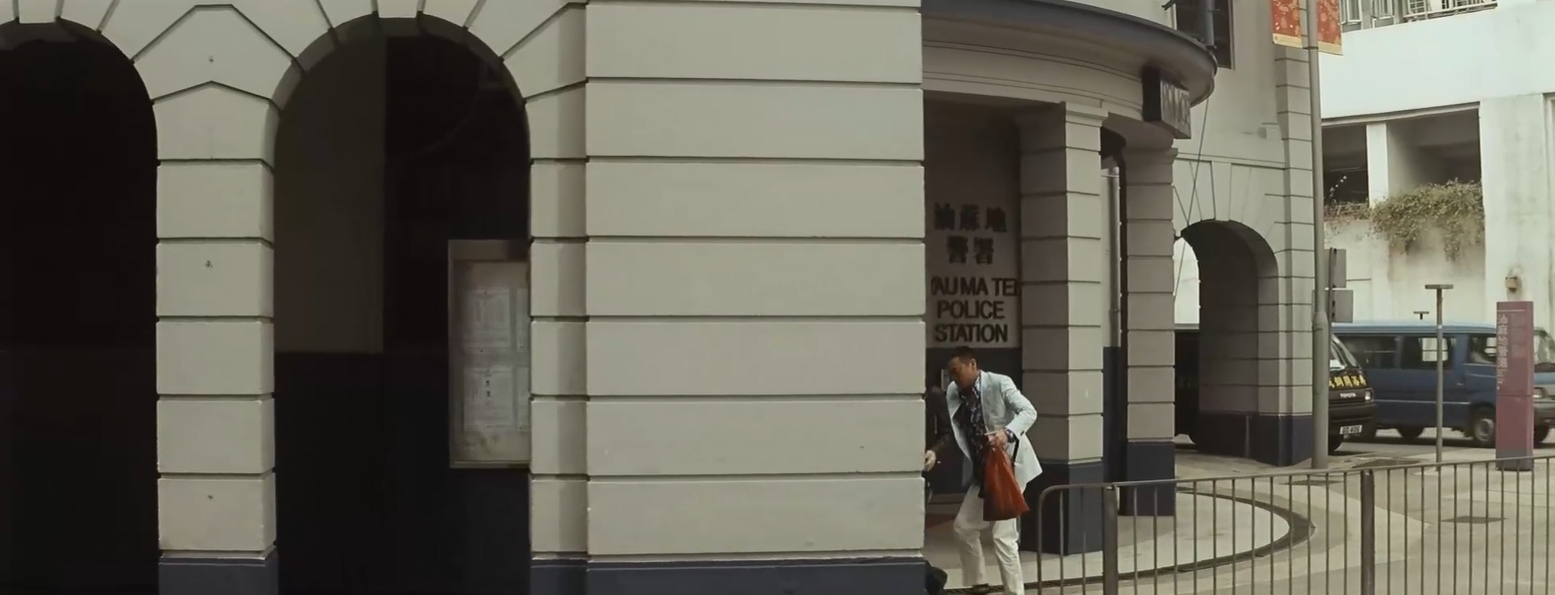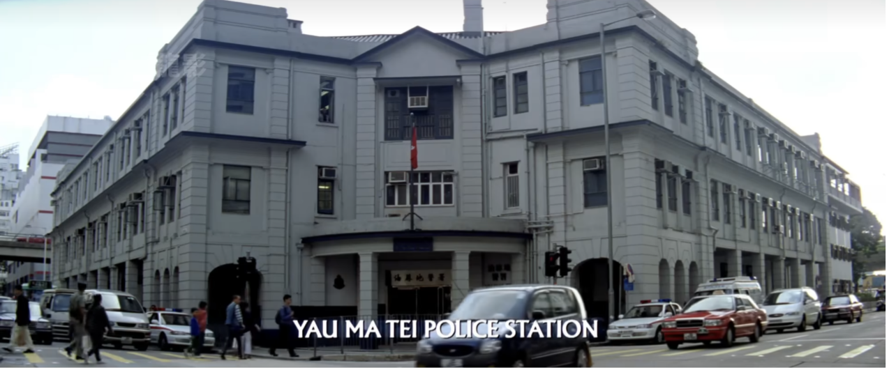 《黑社會》由杜琪峯導演,任達華、梁家輝主演,於2005年上映。電影中,舊油麻地警署既是現實場景,也是權力與宿命的隱喻。電影清晰展現了警署標誌性的外觀——藍灰色拱廊與醒目的門牌,其威嚴的建築風格與黑幫世界的暴力形成強烈對比。而內景的牢籠鏡頭則以冷峻的鐵柵與陰影,暗示角色即便在黑道中呼風喚雨,最終仍難逃法律與命運的禁錮。杜琪峯透過舊油麻地警署的內外場景,將黑幫鬥爭置於更宏大的社會框架下,突顯其作品中一貫的「人如困獸」主題。
