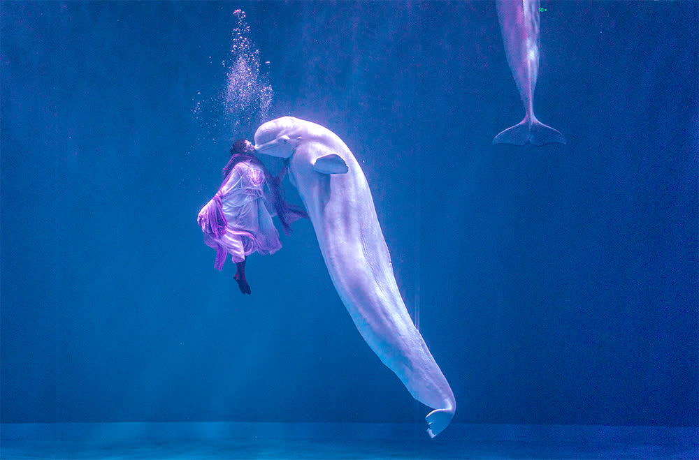 哈爾濱極地公園的王牌表演--世界首創極地白鯨水下表演端午期間震撼升級。白鯨與保育員共舞深海,以四鯨同遊的恢弘陣型煥新演繹「海洋之心」,這一表演曾入選「全球50大歷史時刻」,被無數遊客譽為 「此生必看」的經典傳奇。「此次更融入全新國風彩蛋,保育員身着古風服飾,與白鯨攜手獻上一場別開生面的現場禮遇,將傳統文化與極地美學完美融合,為國風煥新之旅增添『極地特色』風采。」哈爾濱極地公園副總經理 任世博告訴記者,節日同期,同步煥新的水舞秀以全新陣容及全新原創高難度動作驚艷亮相。