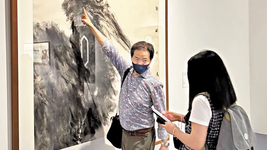 葡萄酒從業者張兆馨表示自己一向喜歡觀賞美術作品,此次來到展覽現場頗感驚喜,她尤為鍾愛其中一幅以大面積淡墨渲染的作品,「當你長時間地注視,這種灰色會越來越加深。」她認為這也是嶺南畫派作品的一大魅力,因為敢於留白,反而令人印象深刻。