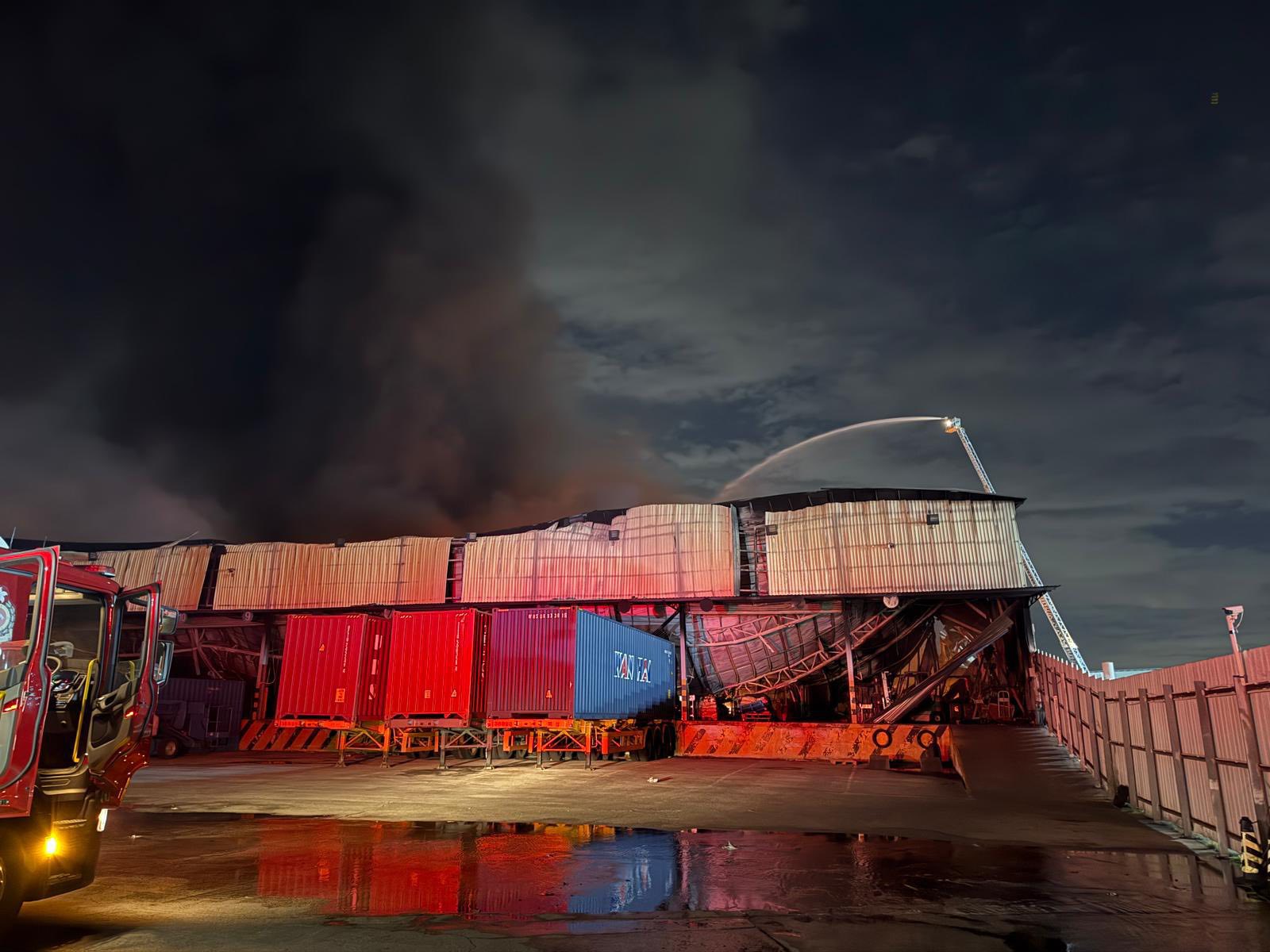 火警發生在昨日中午12時40分,並於下午1時33分火警升為三級。消防處表示,火場面積200米乘200米,涉5個貨倉,內有儲存電器、衣物及雜物,部分貨倉已倒塌。經風險評估後,需鋪設輸水喉逾300米,故下午將火警升為三級,以調派額外資源。