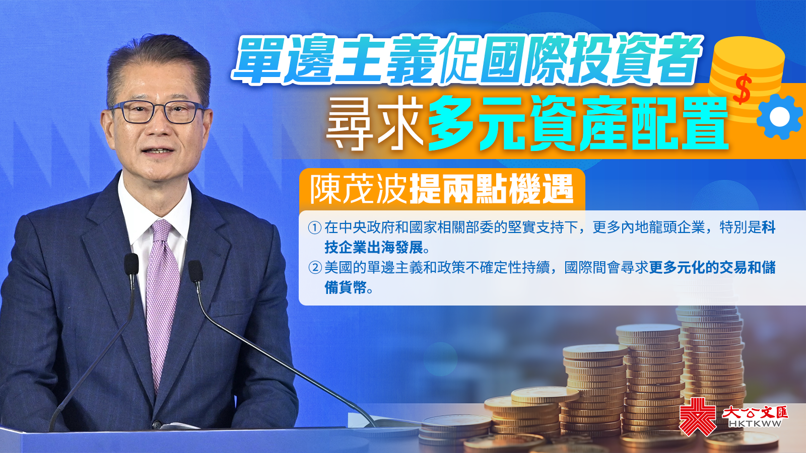 陳茂波表示,當前,百年未有之大變局正加速演進,國家正身處一個複雜、不確定,但挑戰與機遇並存的大時代。地緣政治、單邊主義確實為全球帶來巨大的不確定性,但這也促使國際投資者尋求更多元的資產配置;而國家在科技領域不斷的推陳出新和變革突破,科技企業潛藏的價值正在加速顯現。對於香港的資本市場而言,這新一波浪潮,正創造新的發展空間。其中有兩點,值得注意。