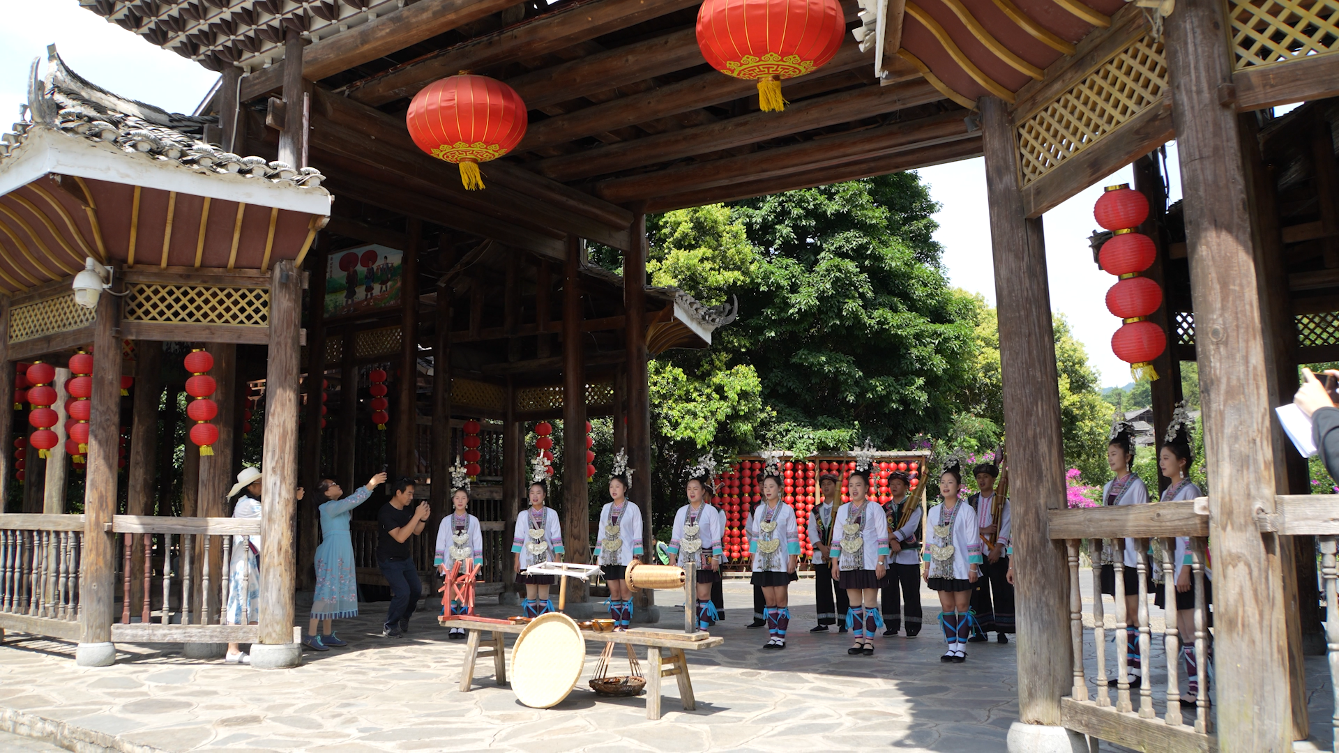「布穀,布穀⋯⋯」身穿侗族盛裝的侗族鄉親,在肇興侗寨門口載歌載舞,合唱的侗族大歌《布穀催春》,歡迎遠道而來的客人。多聲部、無指揮、無伴奏、自然合聲的民間合唱侗族大歌已有2500年歷史,是世界級非遺,在爆火的《哪吒2》電影中也驚艷亮相。聆聽侗族用歌聲傳唱民族文化,是肇興侗寨不容錯過的旅遊體驗。