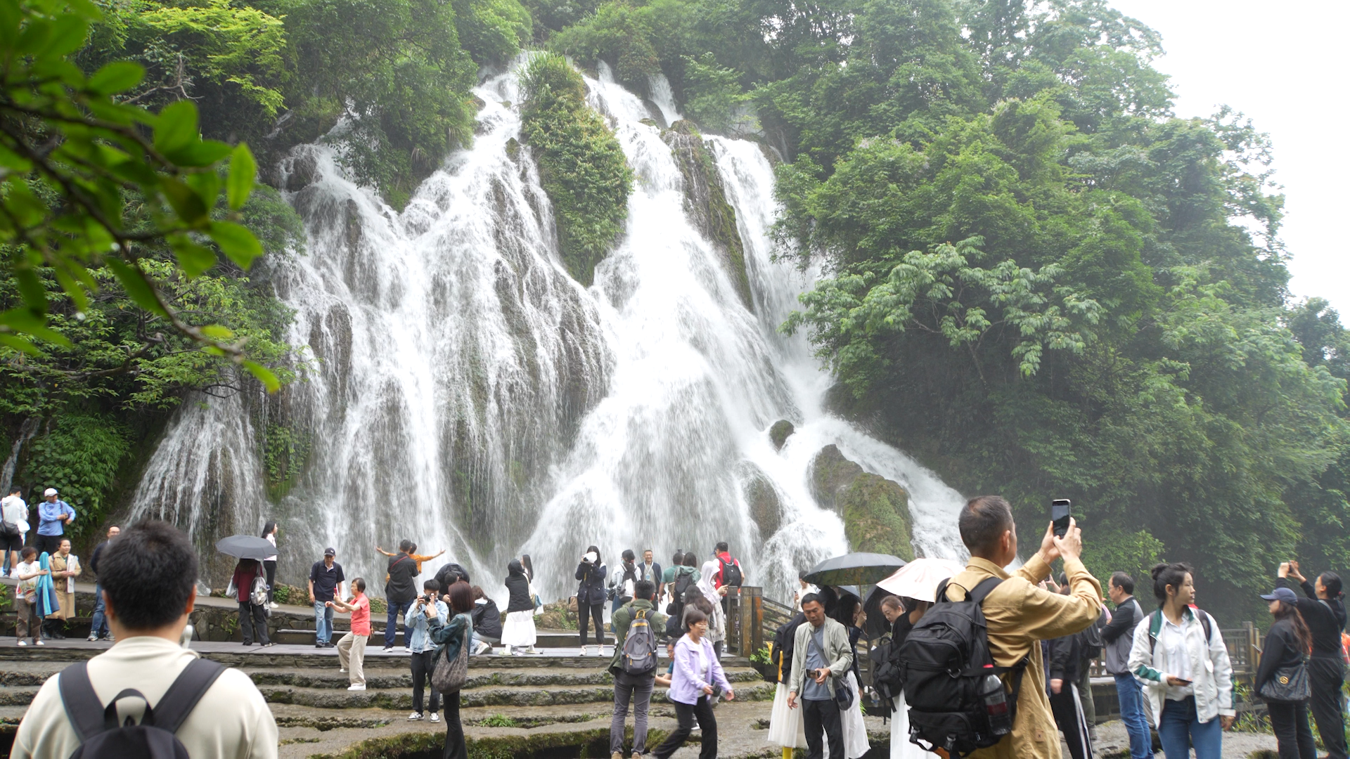 看過貴州代表性的非物質文化遺產後,香港傳媒採訪團轉往荔波感受世界自然遺產——小七孔。得名於景區內一個小七孔石橋的小七孔,被稱為「人間綠寶石」,最大的特色就是水色澄澈碧藍,遠看如綠寶石,近看則清澈見底,甚至能看到河魚躍起逆流而上。由於獨特的喀斯特地貌,這裏有各具特色的瀑布,臥龍潭、翠谷瀑布、68級瀑布、拉雅瀑布⋯⋯景區內響水河水聲潺潺,水上森林鬱鬱蔥蔥。