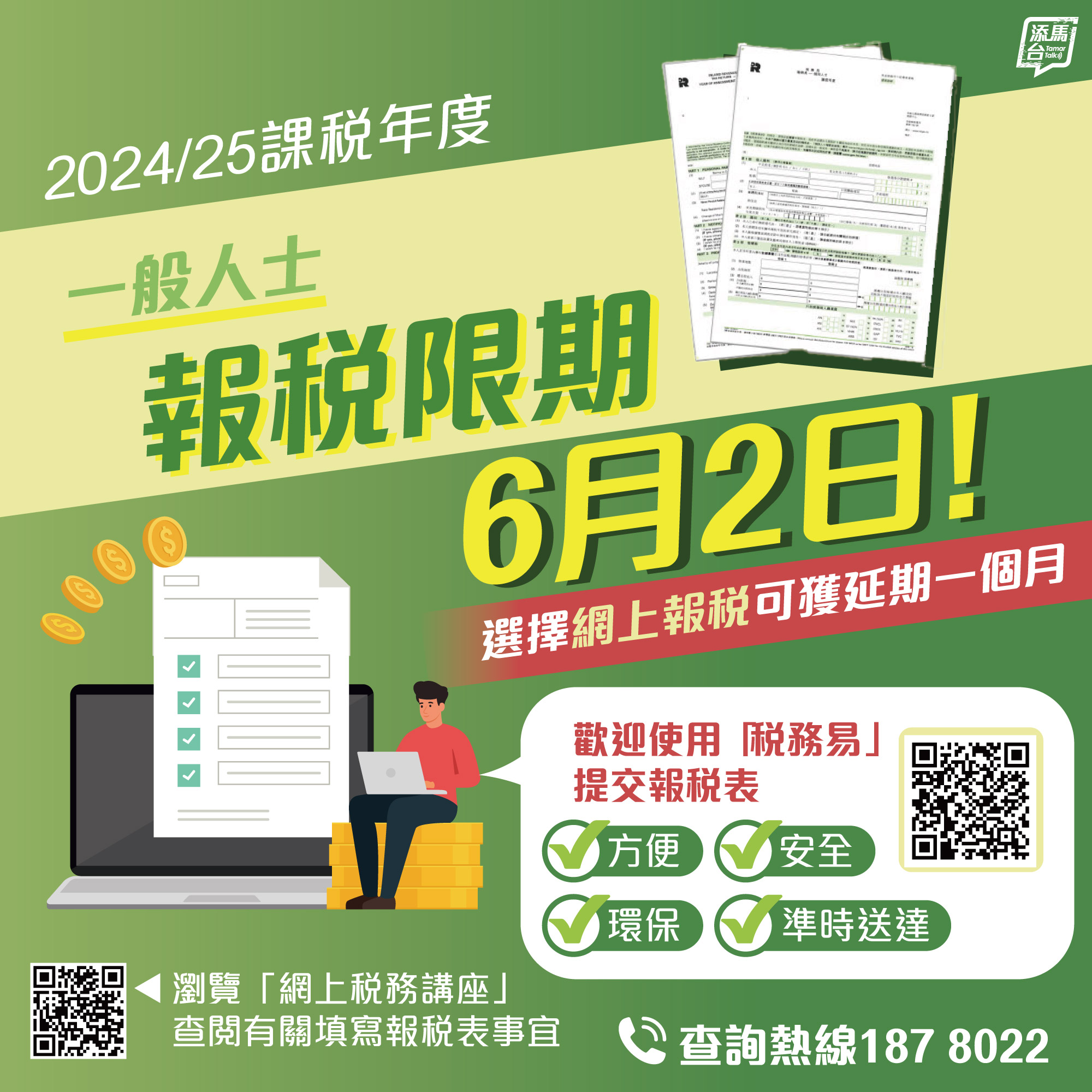 帖文指出,歡迎市民透過「稅務易」電子服務平台提交報稅表,更加方便、安全和環保,更可確保報稅表能準時送達。至於選擇以郵遞交付報稅表的納稅人,須支付足額郵資,以確保郵遞準時無誤。