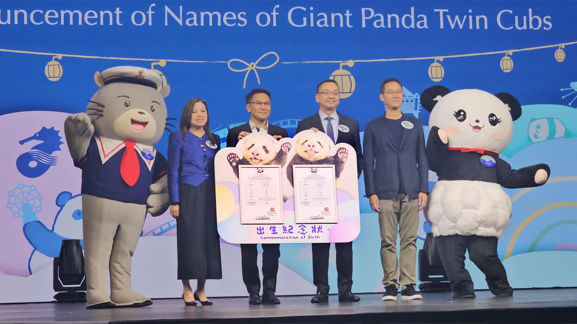 港產大熊貓龍鳳胎正式命名為「加加」和「得得」了!
