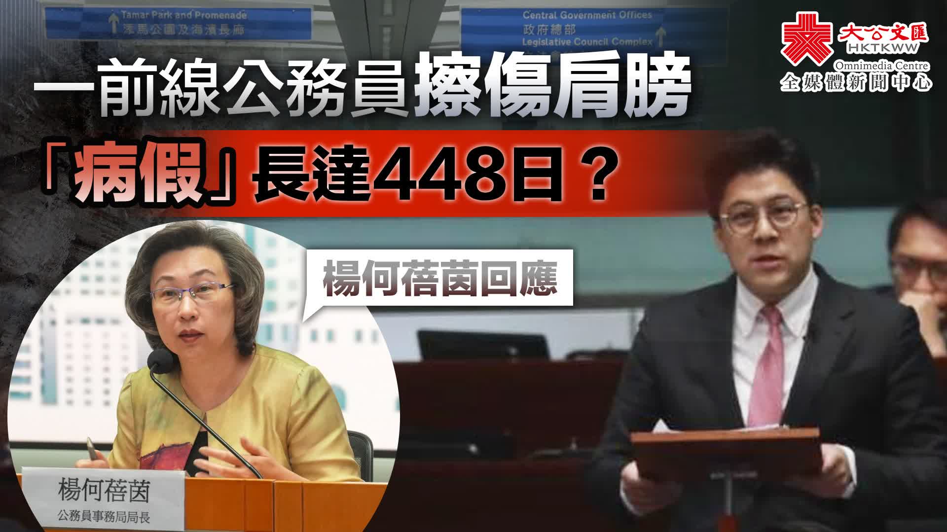 公務員事務局局長楊何蓓茵表示,此案已進入法律程序。公務員事務局有一套全面且嚴謹的病假管理機制,讓所有政策局和部門管方在日常管理轄下公務員申請病假時有據可依,確保患病或受傷員工能獲得所需時間康復及休息的同時,亦能達致有效和公平的病假管理,並嚴肅處理懷疑濫用病假的個案。